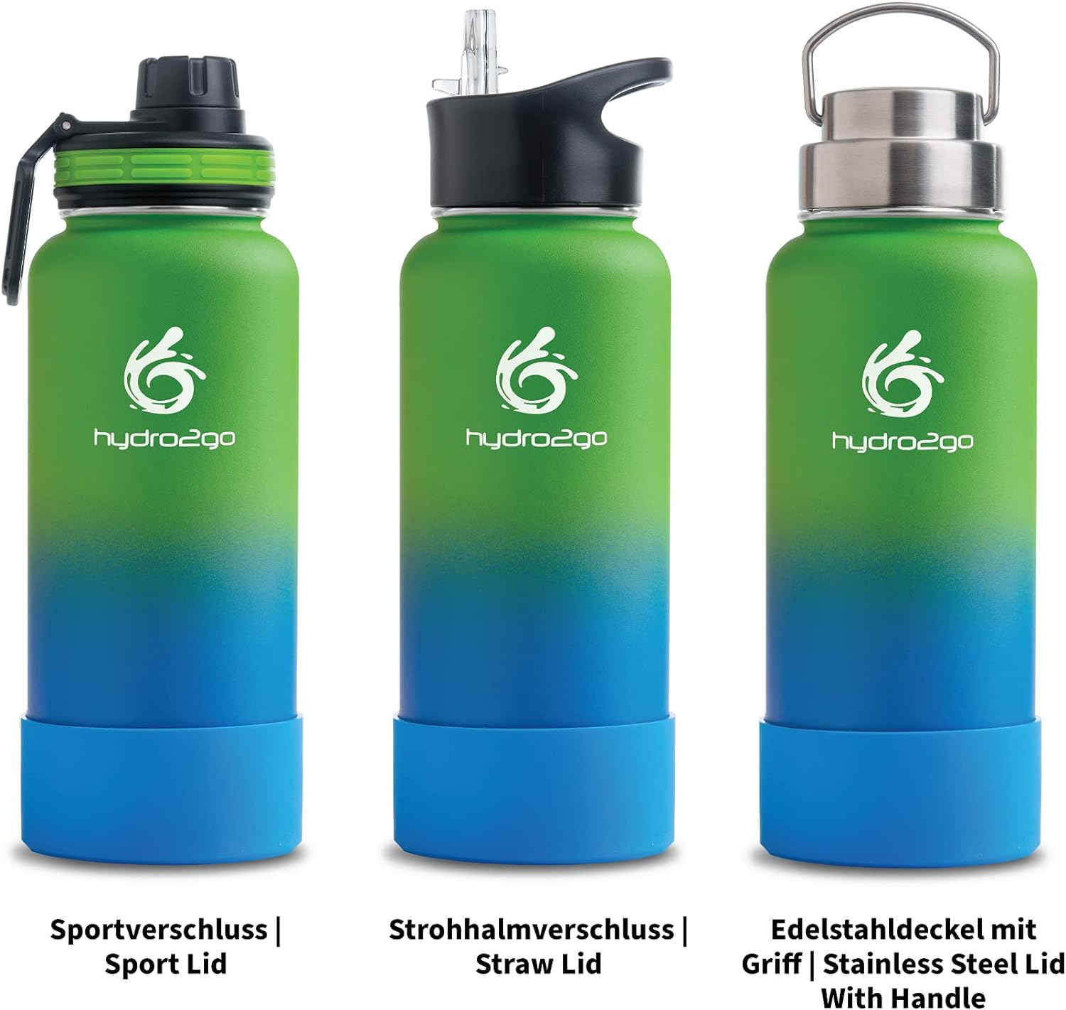 - 🔒 3 PRAKTISCHE DECKEL: Die im Lieferumfang enthaltenen Deckel sind mit allen Trinkflaschen von hydro2go kompatibel: 1. Dynamischer Sportverschluss 2. Edelstahldeckel mit Tragebügel 3. Strohhalm-Verschluss (Ersatz Strohhalme inklusive).