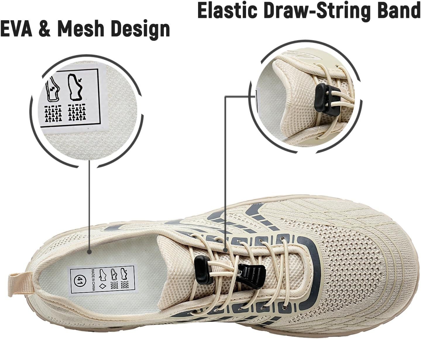 - Flexibel und schnell trocknend: Annahme einer offenen Maschenstruktur und schnelles Entwässerungslochdesign. Das einzigartige, schnell trocknende Futter, kombiniert mit atmungsaktivem Netzgewebe, beschleunigt die Wasserverdunstung, hält den Innenraum