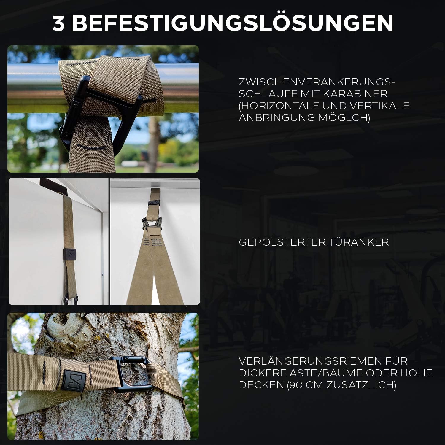 - MUSKELAUFBAU: Mit mehr als 300 Übungen für den kompletten Körper sorgt unser Schlingentrainer für gezielten Muskelaufbau.