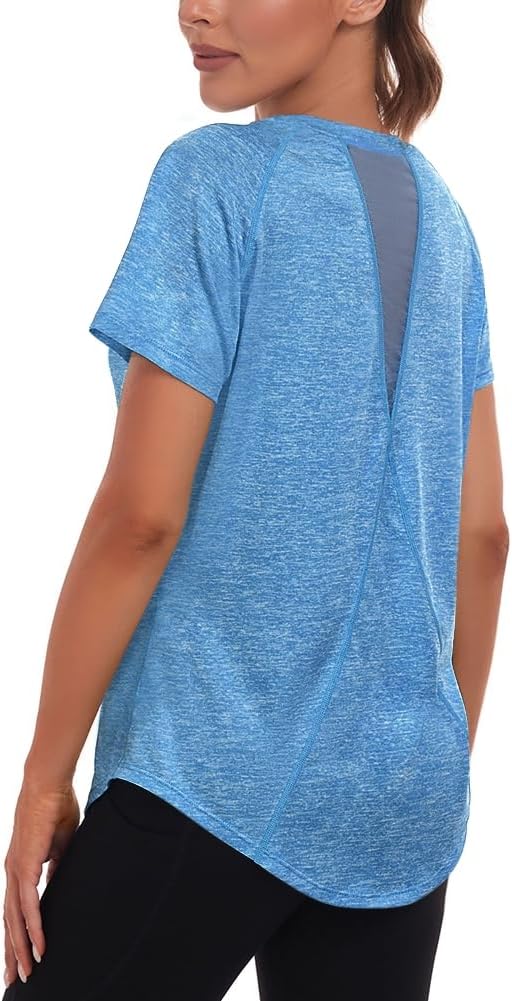 - 【Mesh-Rücken - einzigartiges Design】Kurzer Ausschnitt, Rundhalsausschnitt, schnell trocknende Oberteile, feuchtigkeitsableitende T-Shirts. Das Mesh-Nähte-Rückendesign passt perfekt zu Träger-BHs mit gekreuztem Rücken, atmungsaktiv, sexy und