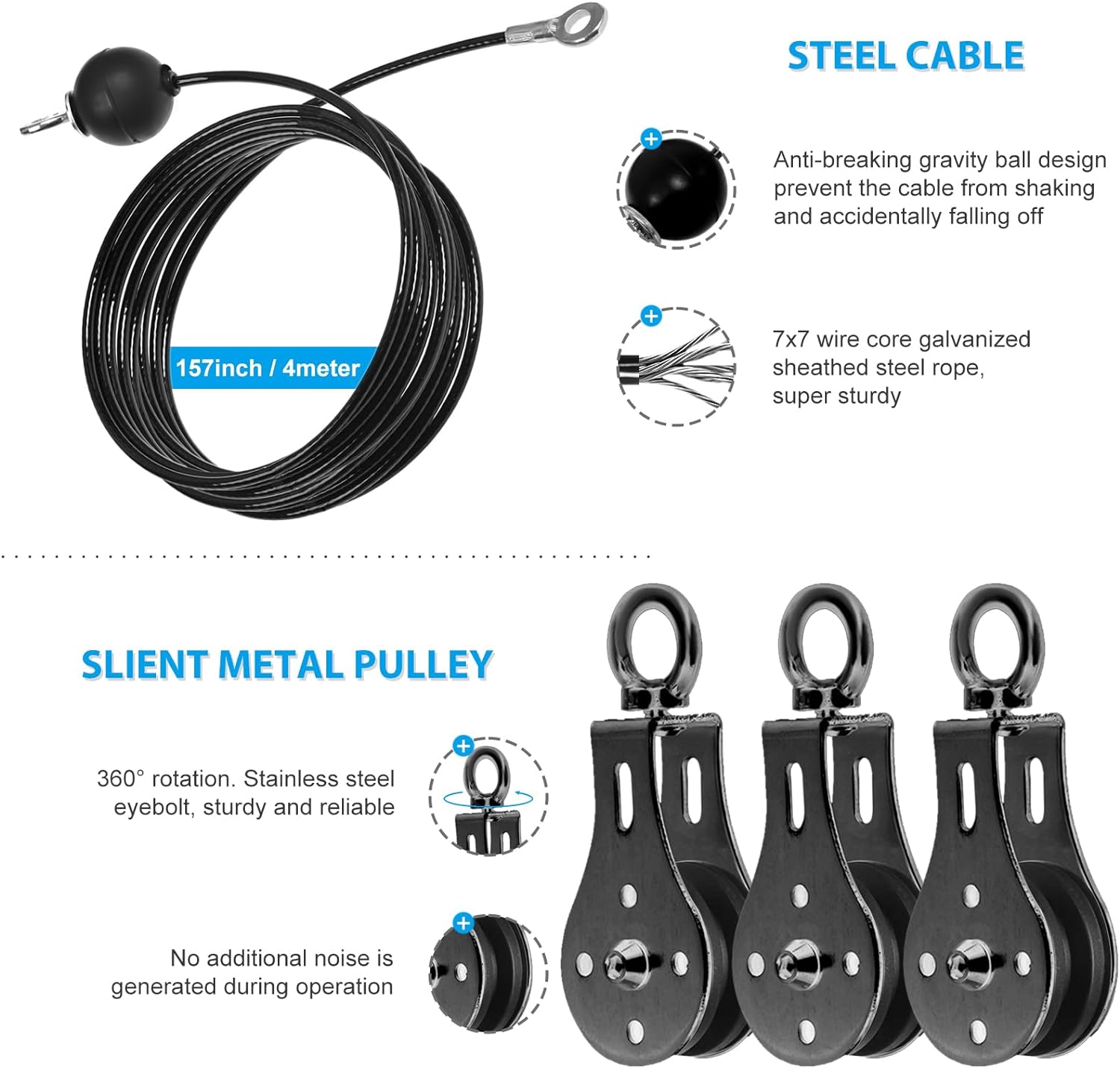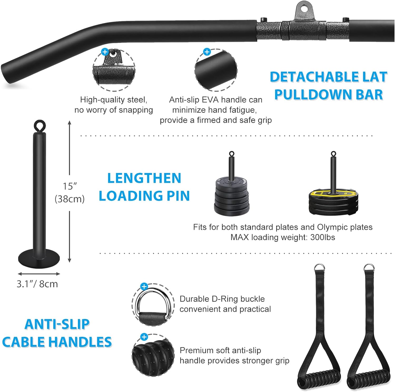 - 【Professionelle Materialien】Seil-zug fitness aus gute qualität Stahlseil, 38cm verlängerter Stift kann mehr Gewichte halten, die maximale Last beträgt 300 lbs. Latzug kabelzug Flaschenzugsystem ausgestattet mit 3 geräuschlosen Riemenscheiben,