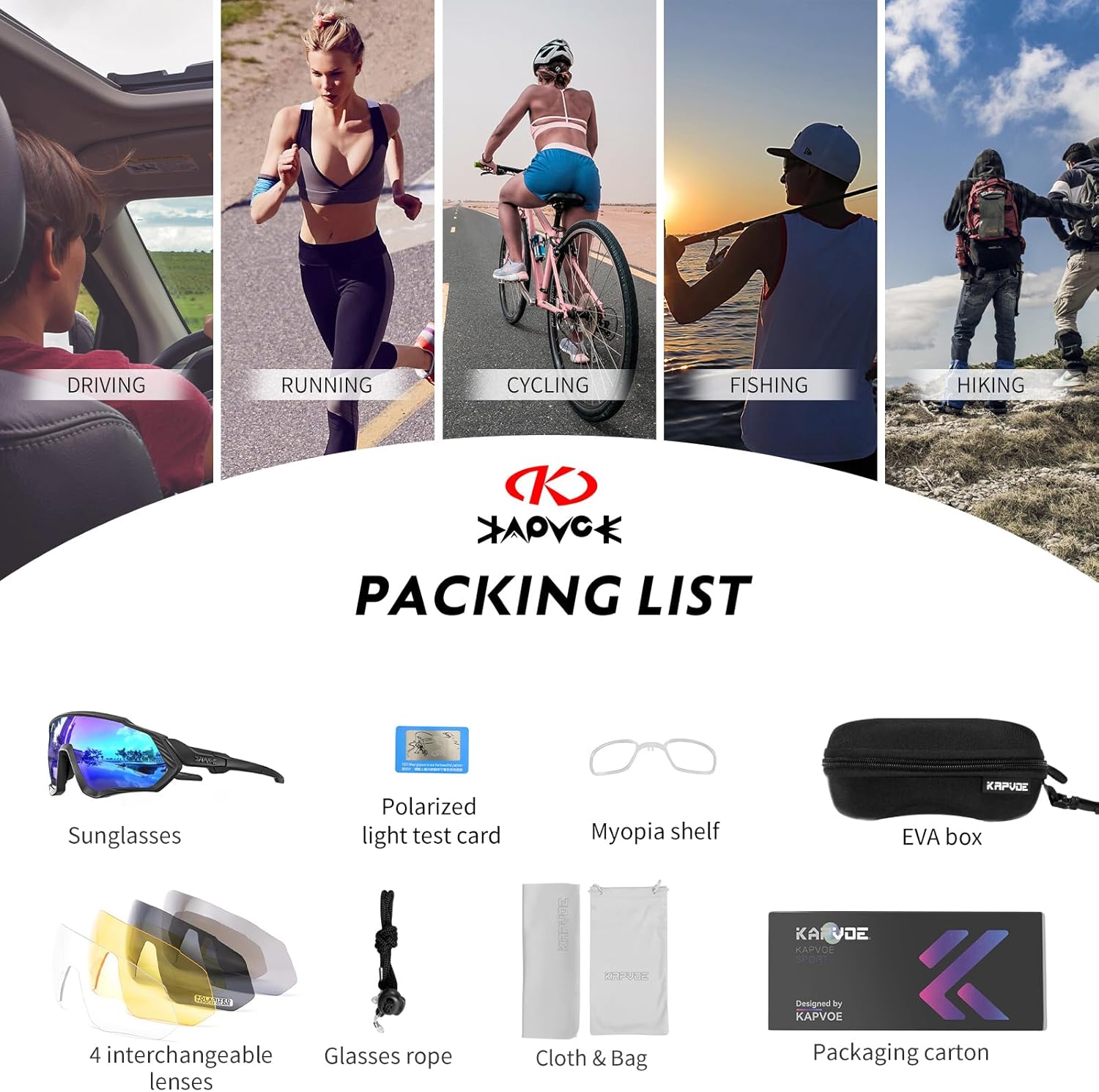 PRODUKTBESCHREIBUNGEN KAPVOE konzentriert sich darauf, jedes Detail zu verbessern,um Ihre Fahrt mit Leichtigkeit und Freude zu gestalten.Unsere Fahrradbrillen wurden sorgfältig unter Berücksichtigung der Ergonomie entwickelt,um eine hervorragende Passform zu gewährleisten und Ihren Komfort während der Fahrt zu verbessern.Die verstellbaren Nasenpads aus weichem Gummi bieten einen sanften Halt und können an die Form Ihrer Nase angepasst werden, um einen festen und dennoch bequemen Sitz zu gewährleisten. Der bruchsichere TR90-Rahmen ist auf Langlebigkeit ausgelegt und hält auch den Belastungen bei anstrengenden Sportarten wie dem Laufen stand, ist aber dennoch leicht und flexibel. Polarisierende Gläser aus hochwertigen Rohstoffen bieten eine hervorragende optische Qualität ohne visuelle Verzerrung und ermöglichen Sportlern eine klare Sicht auf das Spielfeld. Die Gläser blockieren 100 % der schädlichen UVA- und UVB-Strahlen und schützen so Ihre Augen vor Sonnenschäden. Erhältlich in einer breiten Palette von Glasfarben, die den unterschiedlichen Lichtverhältnissen und persönlichen Vorlieben gerecht werden. Dank der stilvollen Beschichtungen und Rahmenfarben können Sie Ihre Brille individuell gestalten, damit sie sowohl ästhetisch als auch praktisch ist. Die KAPVOE Radsport-Sonnenbrille eignet sich für alle Gelegenheiten und verbindet Stil und Funktion zu einem vielseitigen Accessoire für Ihren aktiven Lebensstil. Erleben Sie mit KAPVOE die perfekte Mischung aus Leistung und Stil, um Ihr Sporterlebnis zu verbessern und die Freude an jedem Schritt zu geniessen. Holen Sie sich noch heute Ihre KAPVOE Radfahrer-Sonnenbrille und begeben Sie sich auf ein unvergleichliches sportliches Abenteuer!
