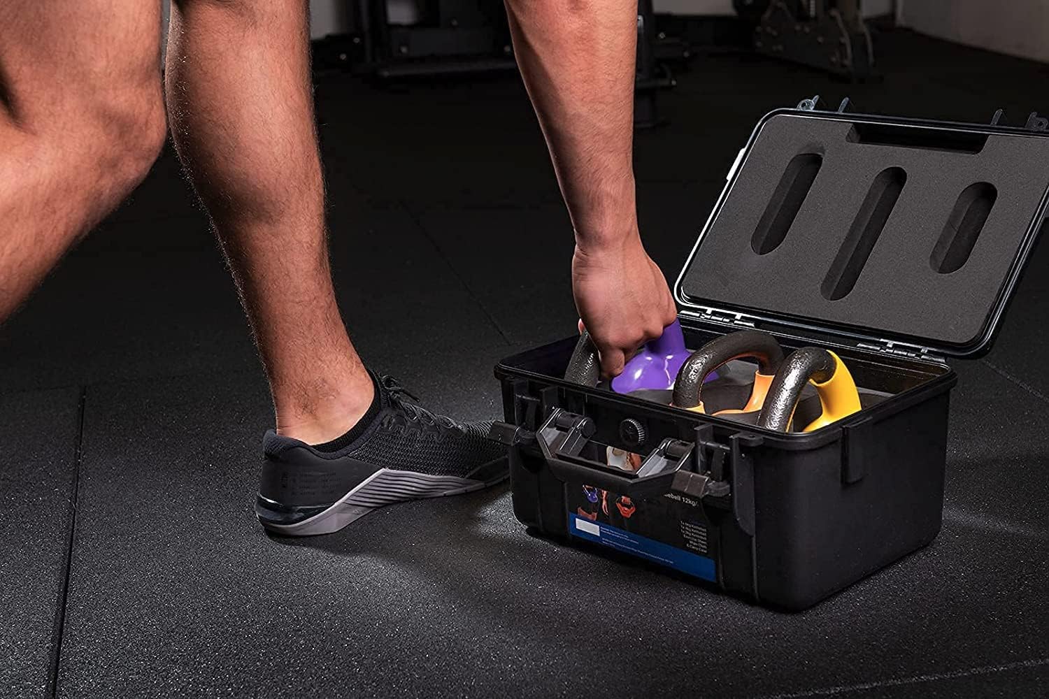 - Dank des Hardcase-Koffers mit passgenauem Inlay kann man die Kettlebells problemlos einpacken und verstauen. Auch zum Mitnehmen für Outdoor Einheiten geeignet.