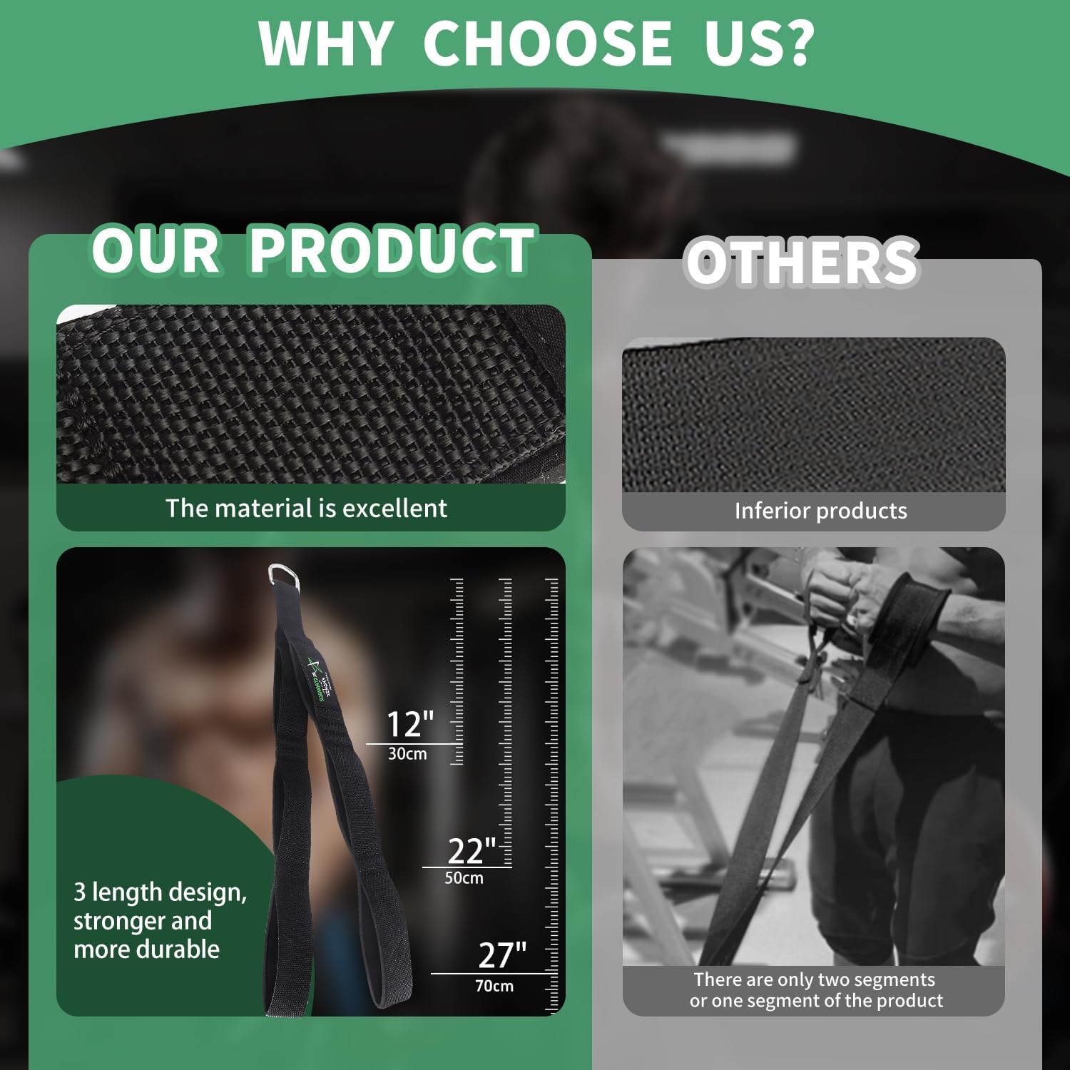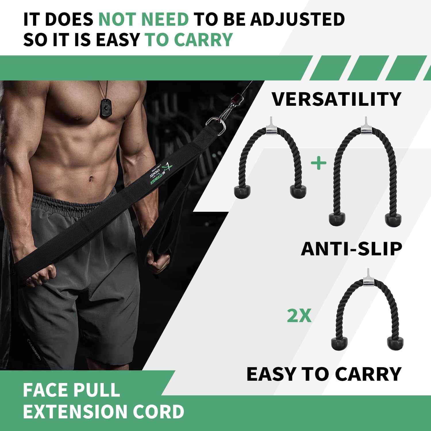 - Vereinen Sie verschiedene Seillängen in einem – Unser einzigartig verstellbares Design bietet eine vielseitige Reichweite von 90 cm bis 140 cm im flachen Zustand und übertrifft die Längen typischer Trizeps-Bänder und Zughilfen auf dem Markt. Diese