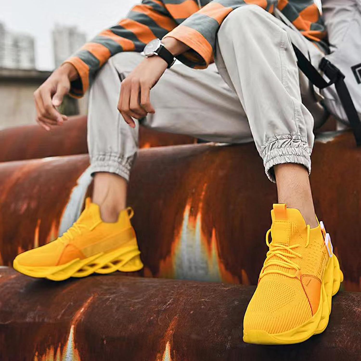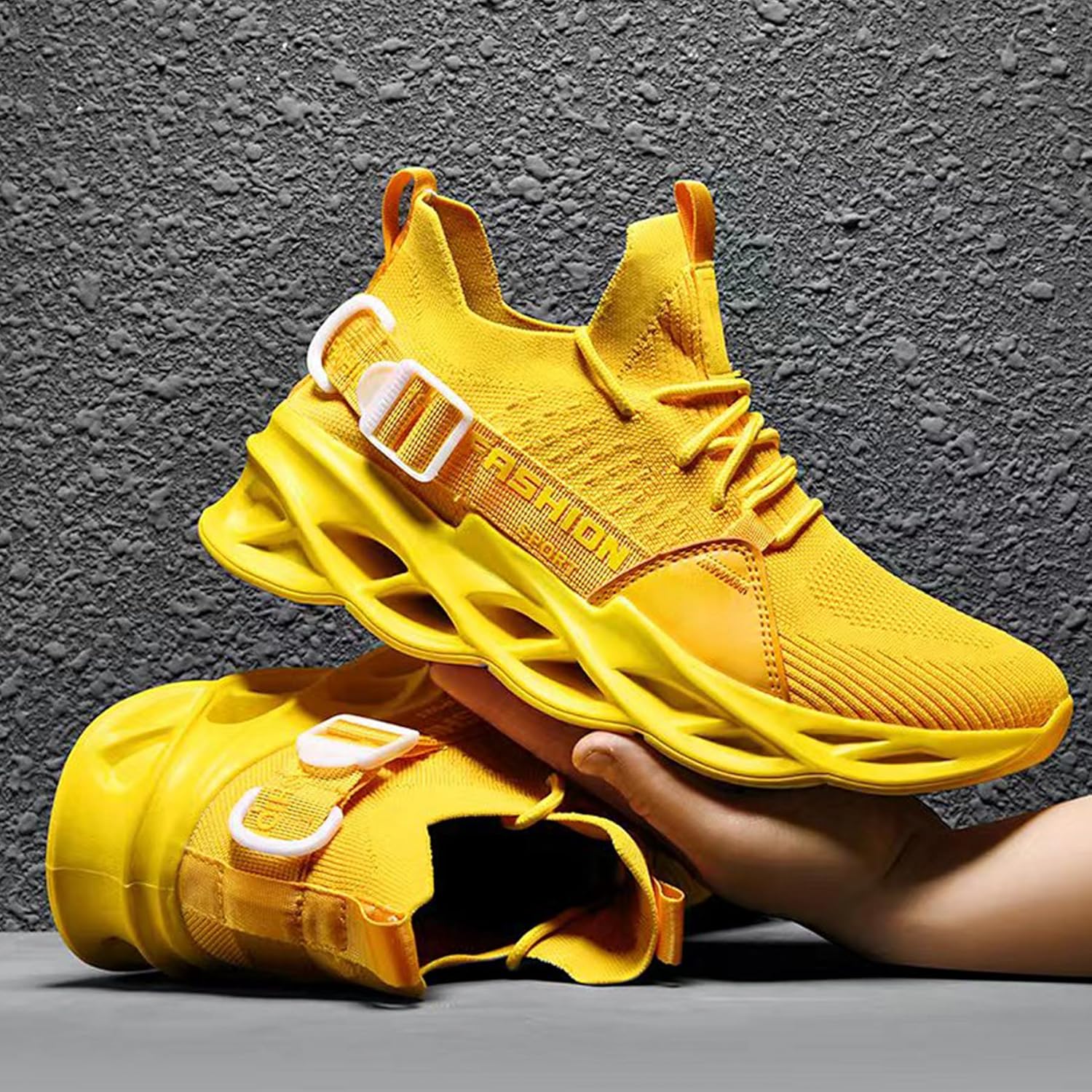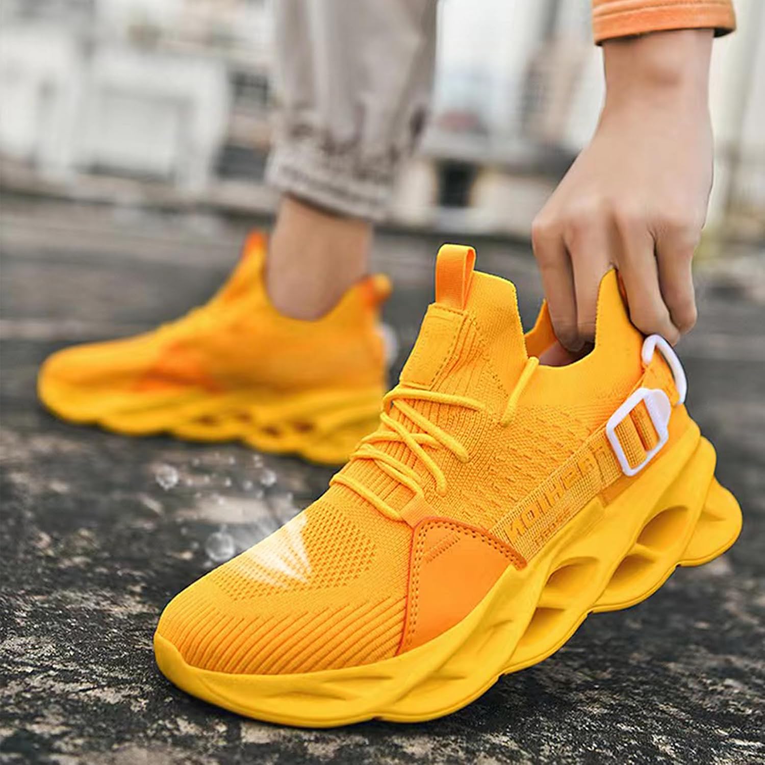 - Laufschuhe für Männer und Frauen, lässig, leicht, atmungsaktiv, für Fitnessstudio, Sport, atmungsaktiv, Sportschuhe, für Fitnessstudio, Komfort, Fitness, Sport, Sneake, 133 Gelb, 4 UK