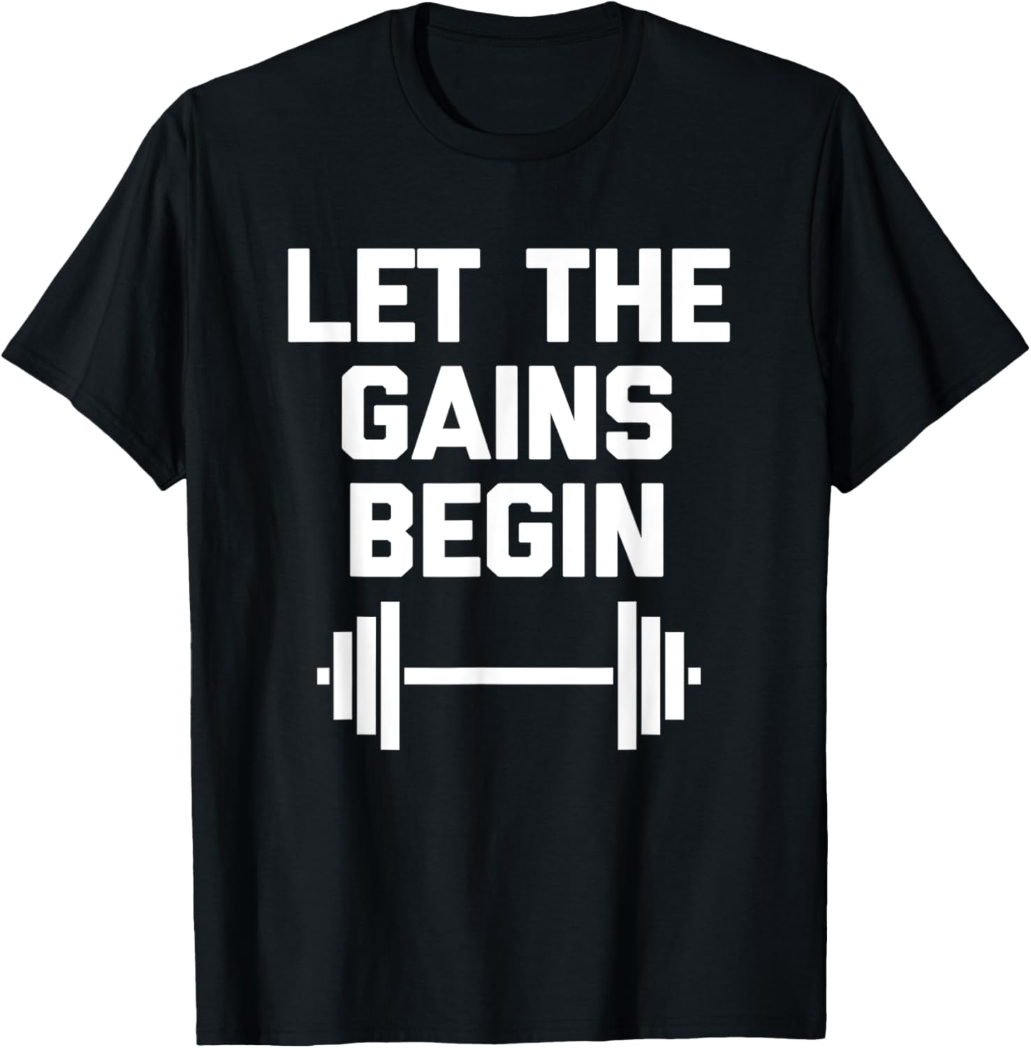 Let The Gains Begin T-Shirt Lustiger Spruch Gym Workout Fitness T-Shirt