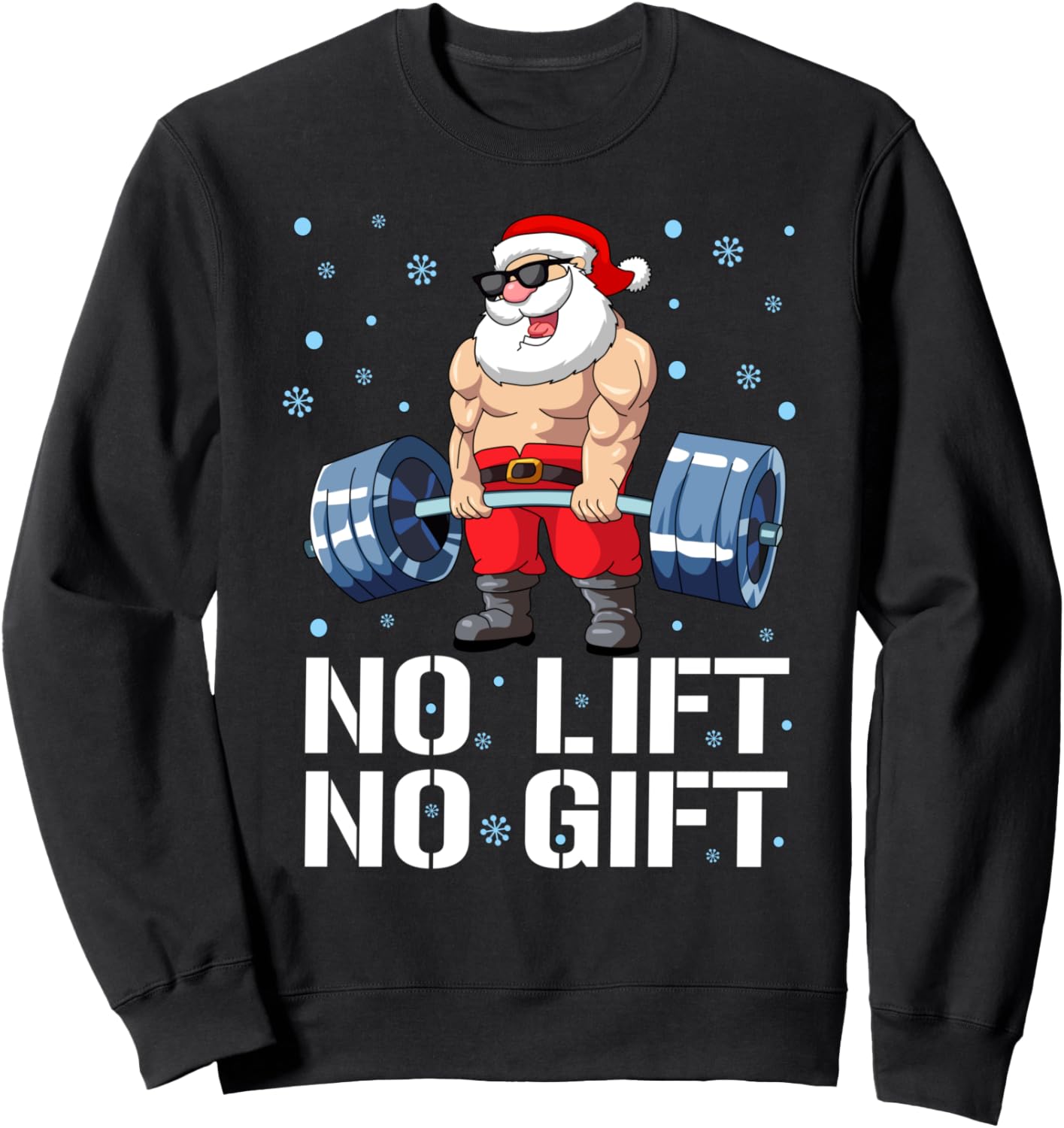 PRODUKTBESCHREIBUNGEN Lustiger Gym Fitness Weihnachtsmann Weihnachten Design. Dieser weihnachtliche Grafikdruck zeigt einen Weihnachtsmann mit Muskeln mit dem Spruch : No Lift No Gift. Ein tolles Geschenk für Weihnachten oder Weihnachten als Pyjama oder Kostüm Lustiges Weihnachts Geschenk Kleidung für Männer, Frauen, Vater, Papa, Mama, Cousin, Onkel, Opa, Oma die es lieben ins Gym zu gehen oder fitness zu trainieren. Dieses Lustiger Gym Fitness Weihnachtsmann Mann Frau Weihnachts Produkt ist von Fitness Gym Weihnachten Geschenk Für Herren Damen erstellt. Mehr