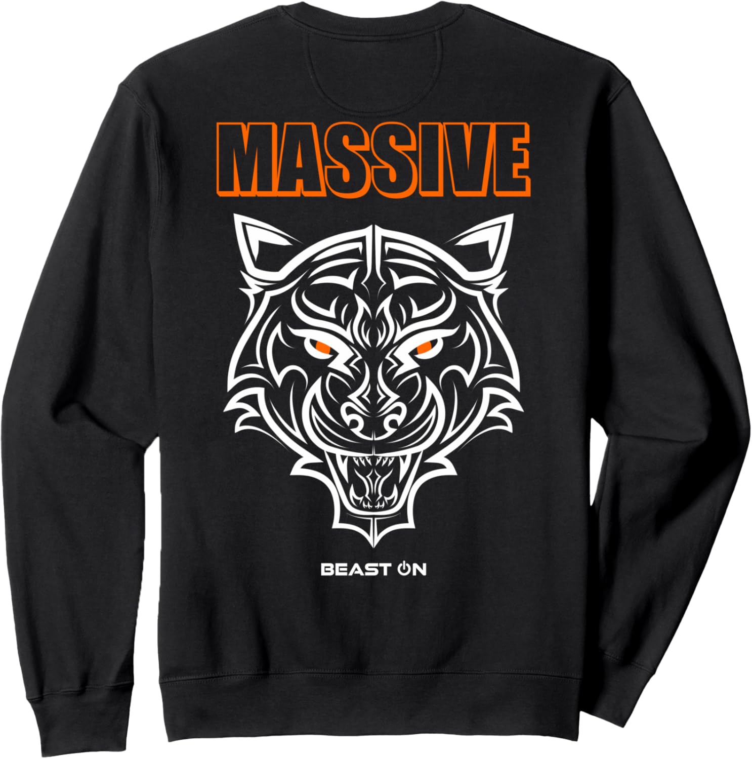 Massive Tiger Kopf Orange Rücken Motiv Gym Workout Fitness Sweatshirt