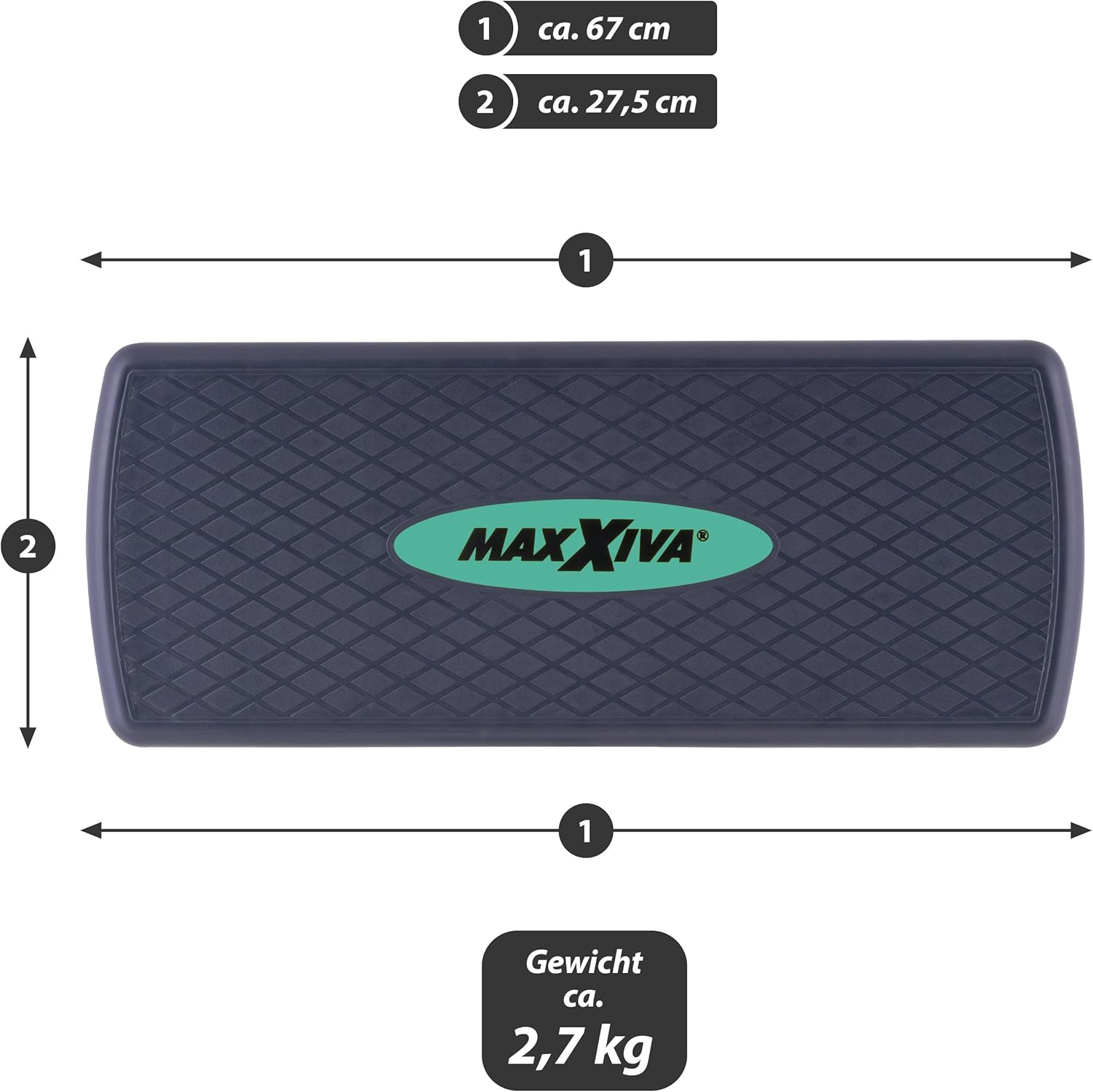 - Das MAXXIVA Board lässt sich 3-fach in der Höhe verstellen wodurch die Intensität der Übungen gesteigert werden kann. Die Unterleg-Matte sorgt für optimalen Stand beim Training.