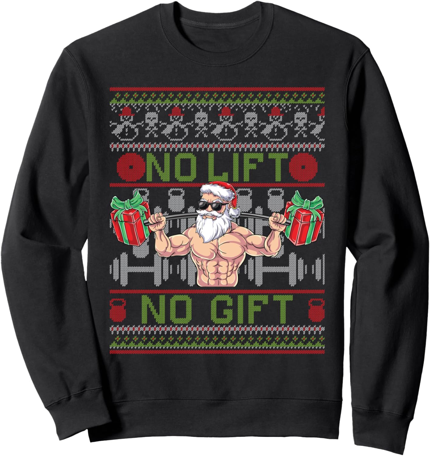 PRODUKTBESCHREIBUNGEN Dieses lustige No Lift No Gift Design ist für alle Fitness, Bodybuilder & Sportbegeisterte entworfen worden. Klassisches Designs im Christmas Ugly Sweater Style, hässlicher Weihnachtspullover. Das lustige Santa Klaus Design für dein weihnachtliches Workout Das Weihnachts-outfit für Jungen, Mädchen, Herrn und Damen. Auf dem Design ist Santa zu sehen wie er Gewichte stemmt. Die perfekte Geschenkidee für jeden Kraftsportler von Familie und Freunden zu Weihnachten. Mehr