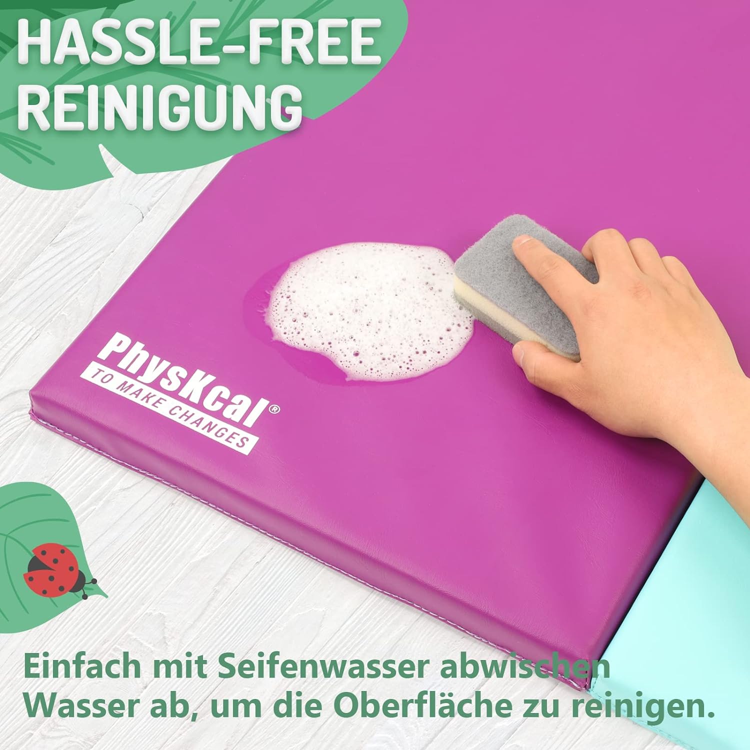 - ❤️𝗦𝗖𝗛𝗨𝗧𝗭 𝗙Ü𝗥 𝗞𝗜𝗡𝗗𝗘𝗥 𝗨𝗡𝗗 𝗝𝗨𝗡𝗚𝗘 𝗚𝗬𝗠𝗡𝗔𝗦𝗧𝗘𝗡- Das Abdeckmaterial ist aus strapazierfähigem Vinyl, das bleifrei, phthalatfrei, antimikrobiell und schimmelresistent ist, und ist 100 % freundlich für die empfindliche Haut von Kindern. Extrem strapazierfähiger und robuster vernetzter EPE-Schaumstoff wird für eine gepolsterte, stützende Oberfläche gefüllt, die Ihrem jungen Turner oder Cheerleader Sicherheit und Beruhigung bietet, wenn sie Taumeln, Radschlagen und Handsprünge üben.