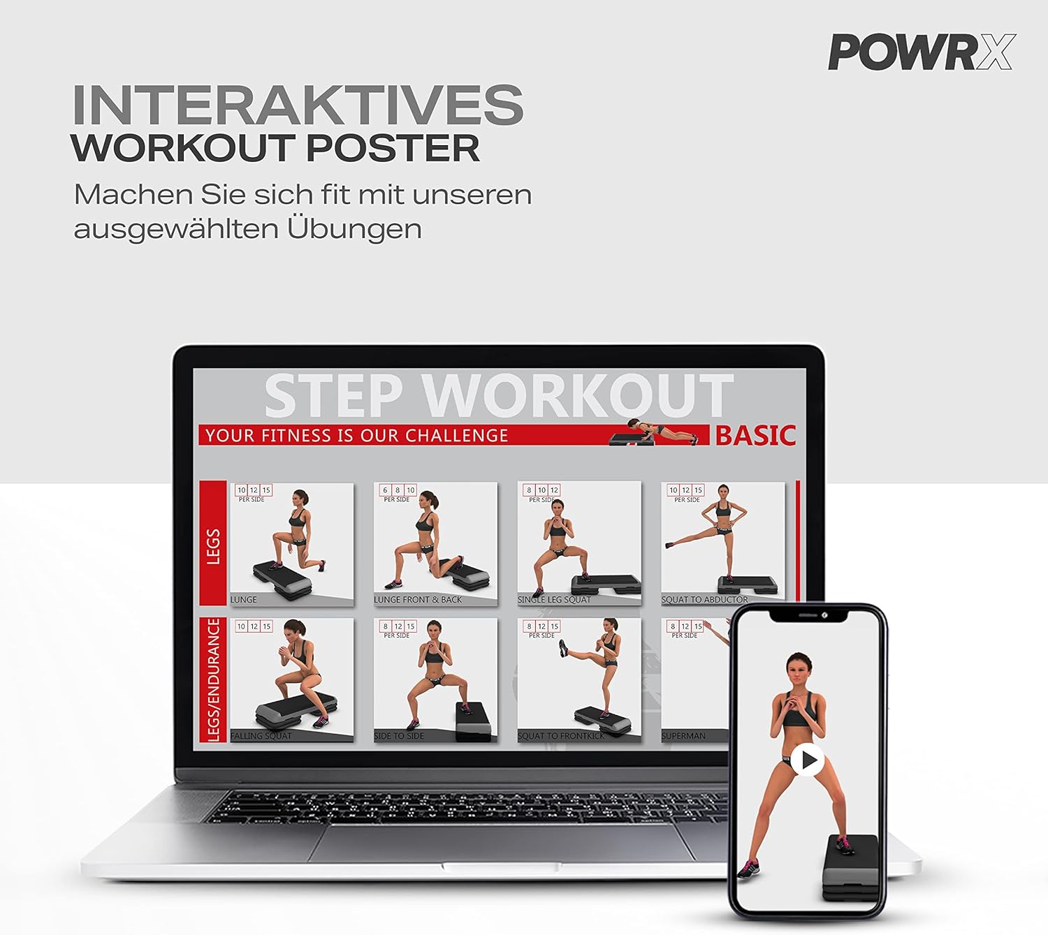 - Produkt - 1 x POWRX Home Stepper Aerobic | Masse: 68 cm x 28,5 cm x 10-15 cm | Link interaktives Workout Poster per Mail in Ihrer Versandbestätigung.