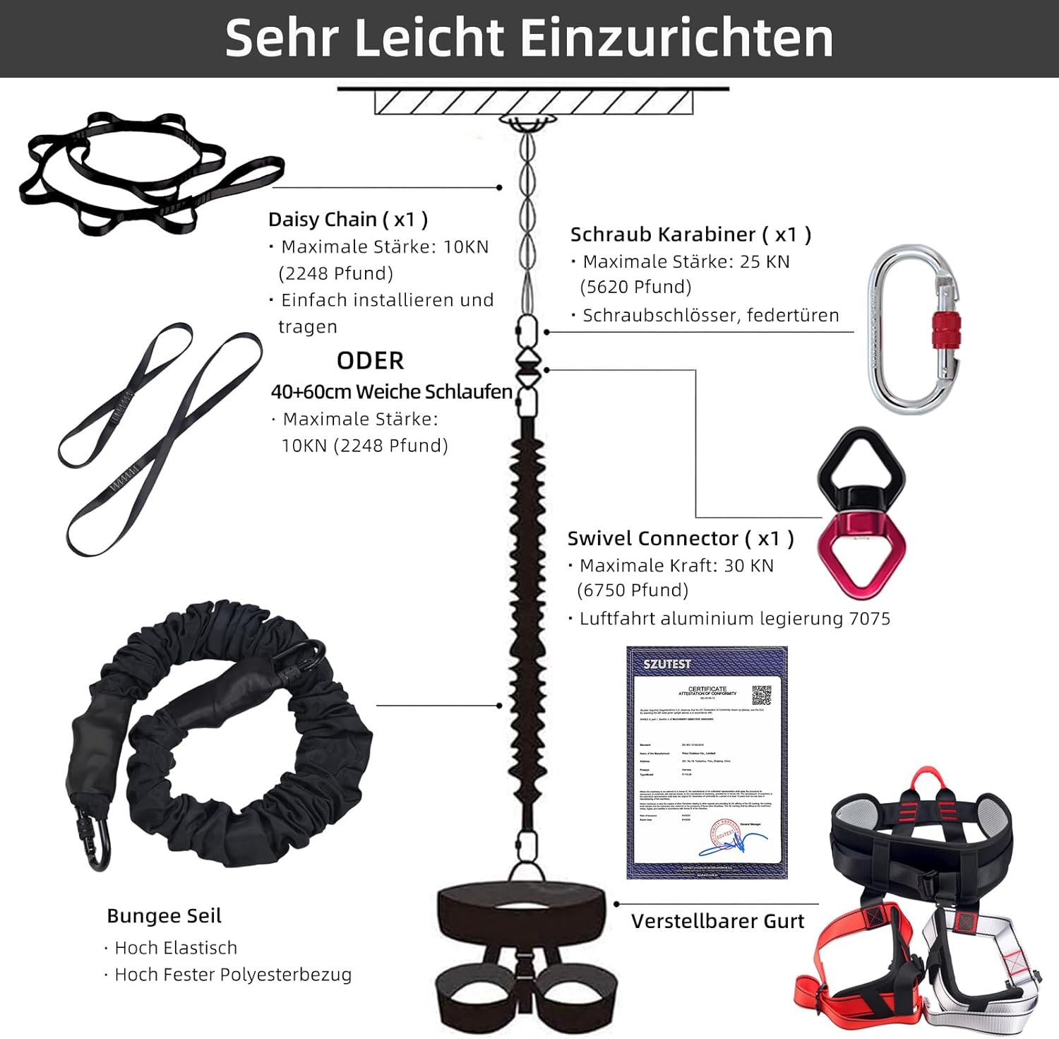 - Das Gravity Bungee Dance Rope Kit hat den Test bestanden, es ist elastisch und sicher für Sie, um Beweglichkeit und plyometrisches Training zu machen.Ungeübte Trainierende erhalten konzentrierten Druck auf den unteren Rücken, was zu Muskelkater