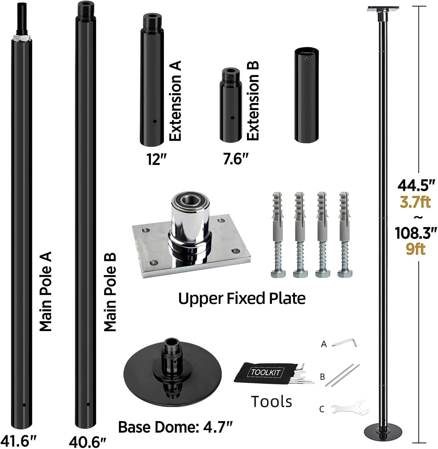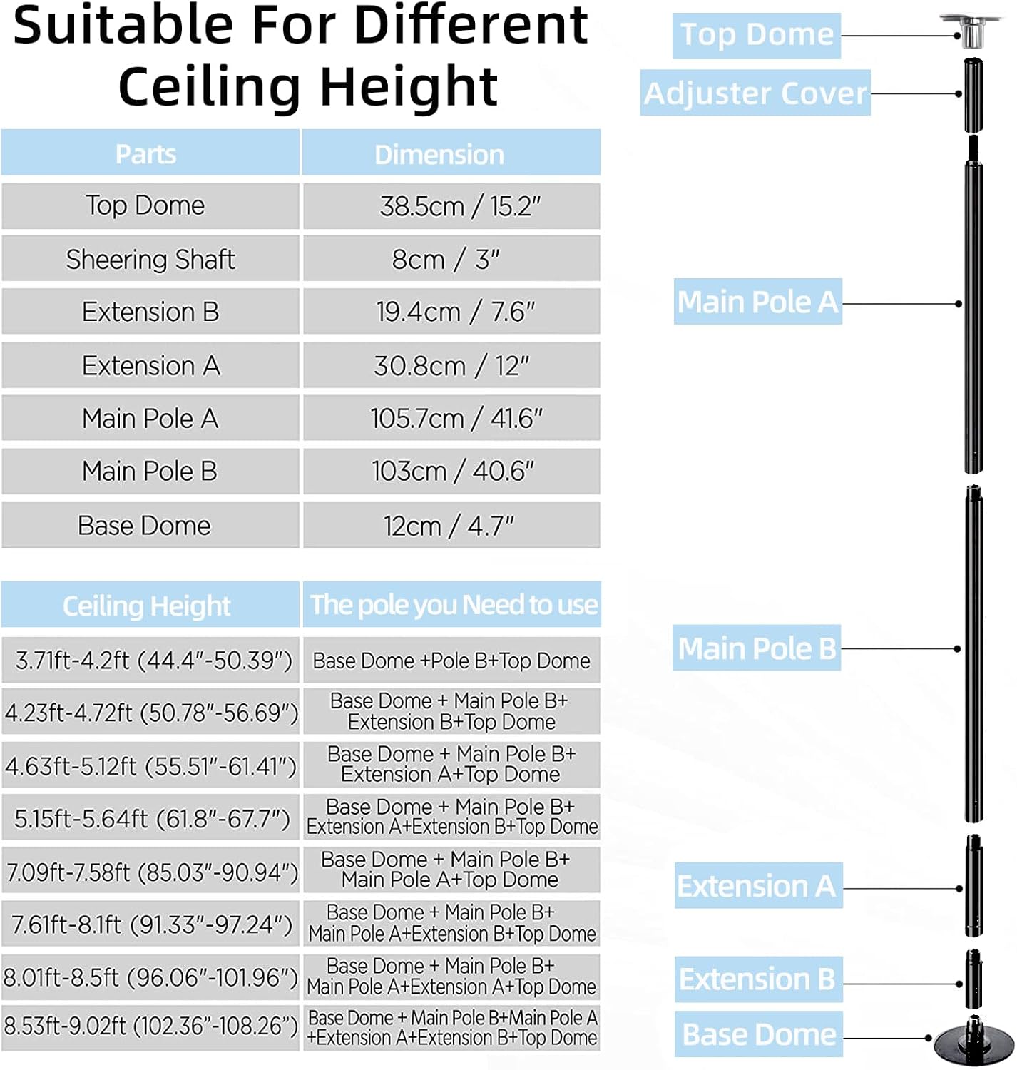 - EMPFOHLENE HÖHE: Unser Festplatten-Tanzstange ist für den Einsatz im Studio geeignet und hat einen Durchmesser von 45 mm für Decken von 7,3 bis 9 Fuss. Das Paket enthält 2 Verlängerungsstangen und einen Höhenversteller, aber stellen Sie sicher,