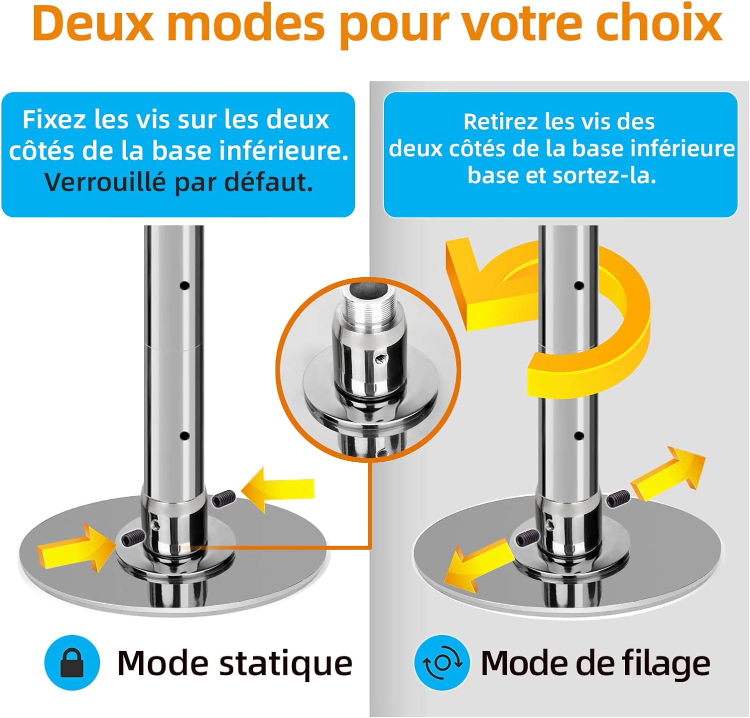 - Drehbarer Tanzpfosten Unser Fitnesspfosten kann statisch oder drehbar sein. Mit einem Verriegelungsschlüssel müssen Sie nur die an der unteren Basis lösen, um sie zu schütteln. Egal, ob Sie ein Anfänger oder ein professioneller Poltänzer sind,