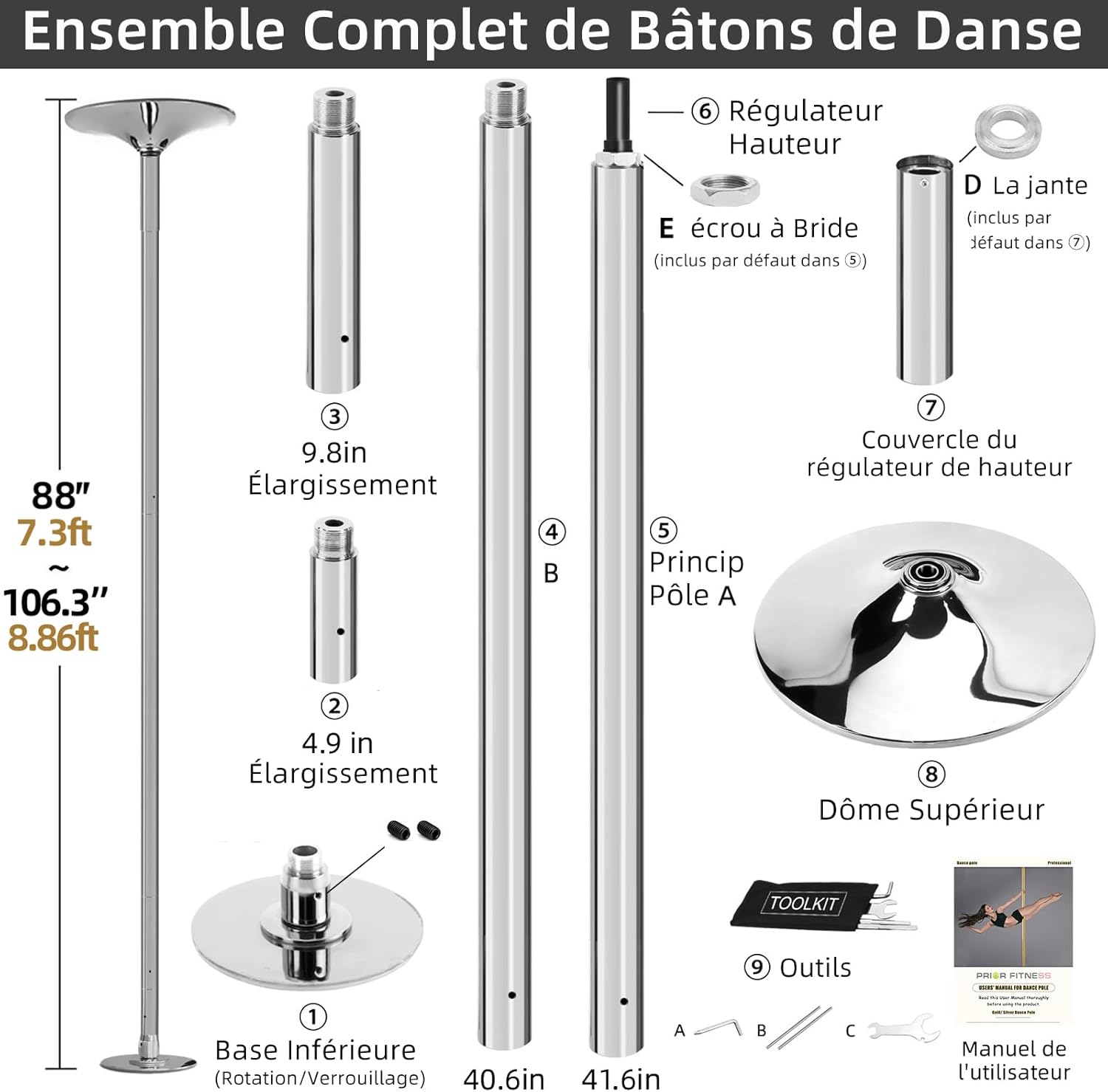 - INKLUSIVE DIE AUSWEITUNG DES PLE Unser Standardpfostenset für den Tanz passt für Decken von 7,33 bis 9 Fuss. Das Set beinhaltet 2 optionale Verlängerungen und einen flexiblen Höhenversteller. Wenn Ihre Decke grösser als 9 Fuss (Plus-Grösse) ist,