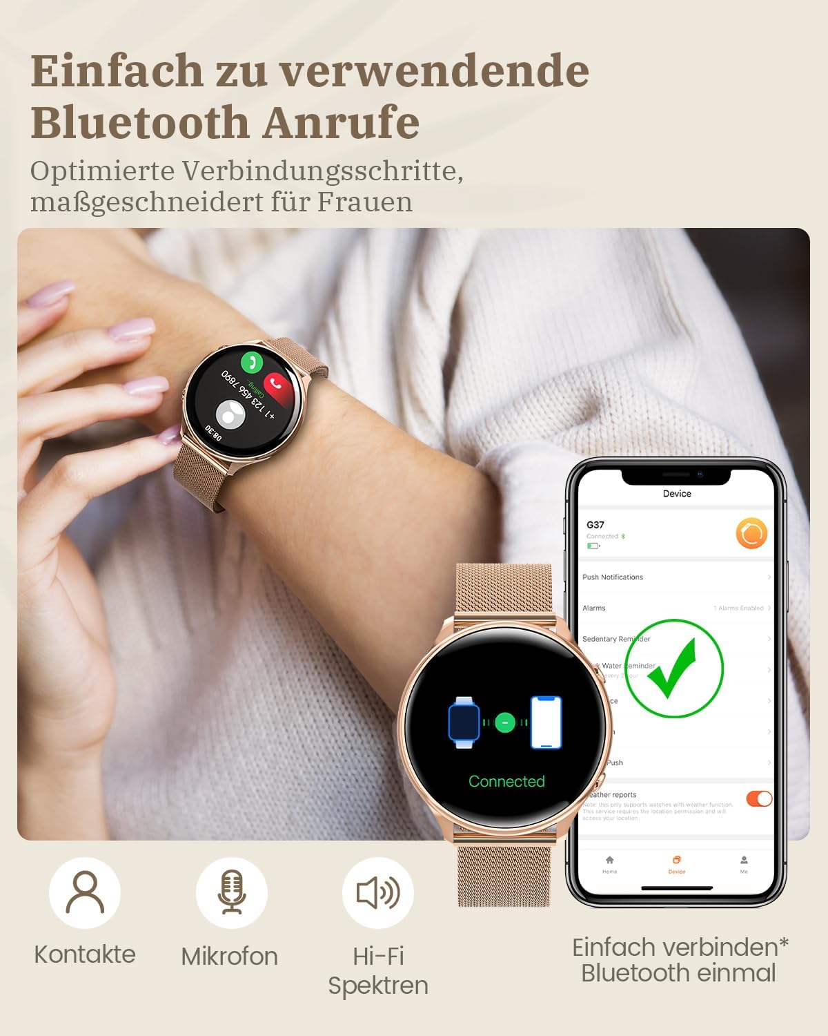 - ✨【Bequeme Bluetooth-Anrufe】Dank des neuesten aktualisierten BLE5.3-Chips können Sie Anrufe auf Ihrer Smartwatch ganz einfach mit einer Bluetooth-Verbindung annehmen, tätigen und abweisen, wodurch umständliche Verbindungsschritte vermieden werden