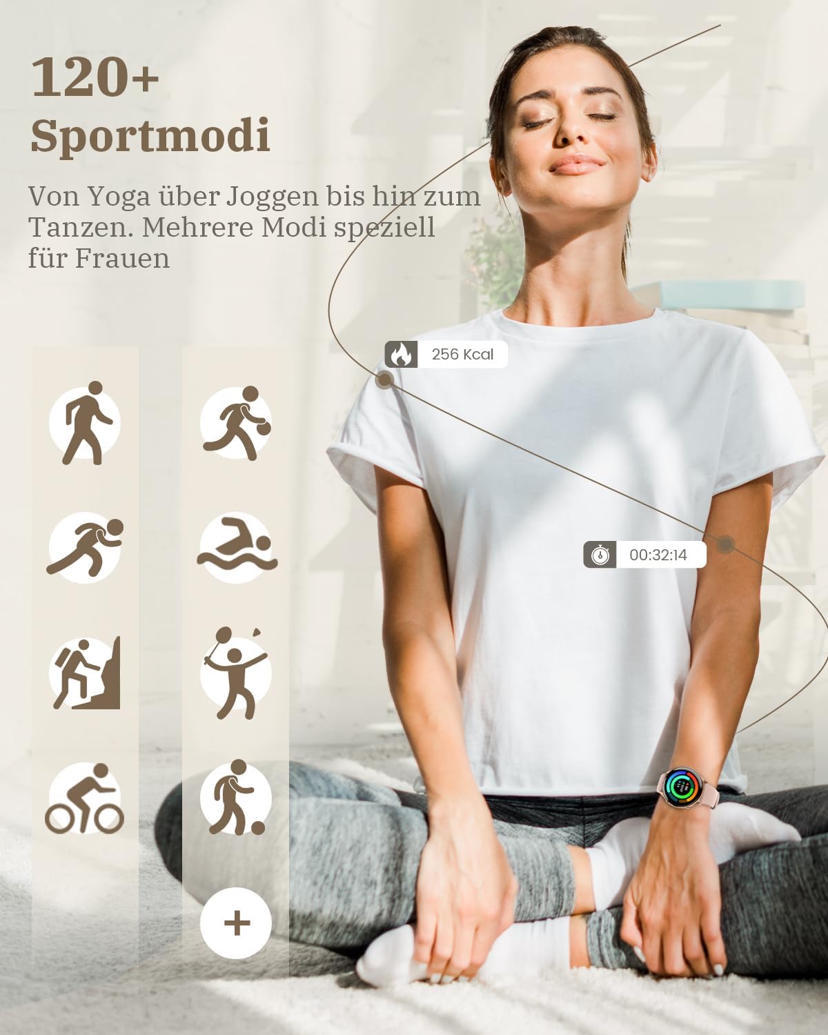 - 🧘♀️【120+ Lieblingssportarten für Frauen】RUXINGX Smartwatch Damen verfügt über 9 integrierte Sportarten und über 100 Sportarten in der APP. Wählen Sie Ihren Lieblingssportmodus, um Ihre Uhr zu personalisieren, z. B. Yoga, Laufen,