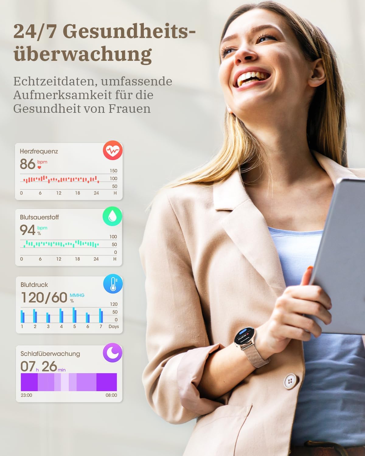 - 💖【24/7 Behüte ihre Gesundheit】 RUXINGX Smartwatch Damen rund verbessert die weibliche Funktion, unterstützt die Menstruationsvorhersage, achtet auf den besten Zeitpunkt für Schwangerschaft und Geburt und zeichnet auf, ob Ihr Zyklus regelmässig