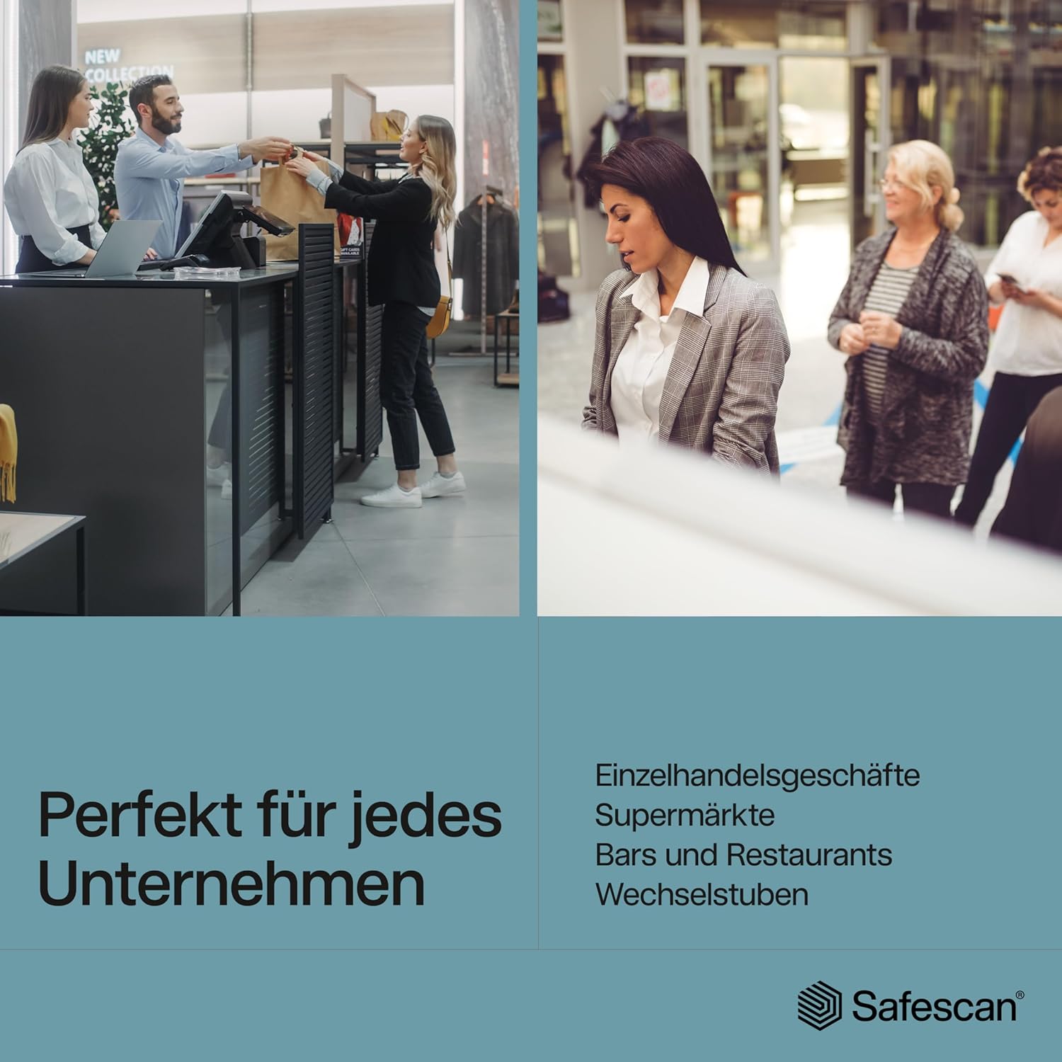- EINFACHE BARGELDVERWALTUNG: Optimieren Sie Ihre Bargeldverwaltung mit einem passenden Zubehör. Drucken Sie Ihre Zählergebnisse ganz einfach mit dem optionalen Safescan TP-230 Drucker aus oder exportieren Sie diese direkt auf Ihren Computer mit der