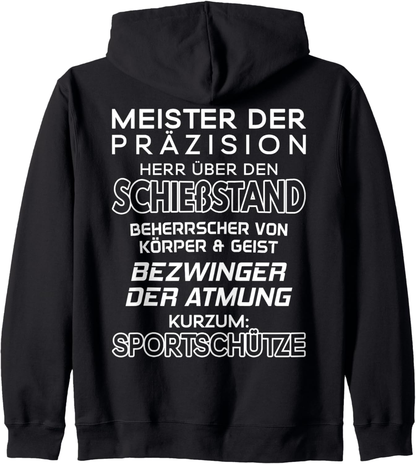 PRODUKTBESCHREIBUNGEN Du bist Sportschütze oder Sportschützin und auf der Suche nach einem neuen Design, das sich auf Dein Hobby bezieht? Dann ist dieses Sportschiessen und Schützenverein Produkt vielleicht genau das Richtige für Dich. Auf diesem Schützenverein Produkt steht: "Meister der Präzision - Herr über den Schiessstand - Beherrscher von Körper & Geist - Bezwinger der Atmung - Kurzum: Sportschütze". Ein passendes Design für jeden Sportschützen.