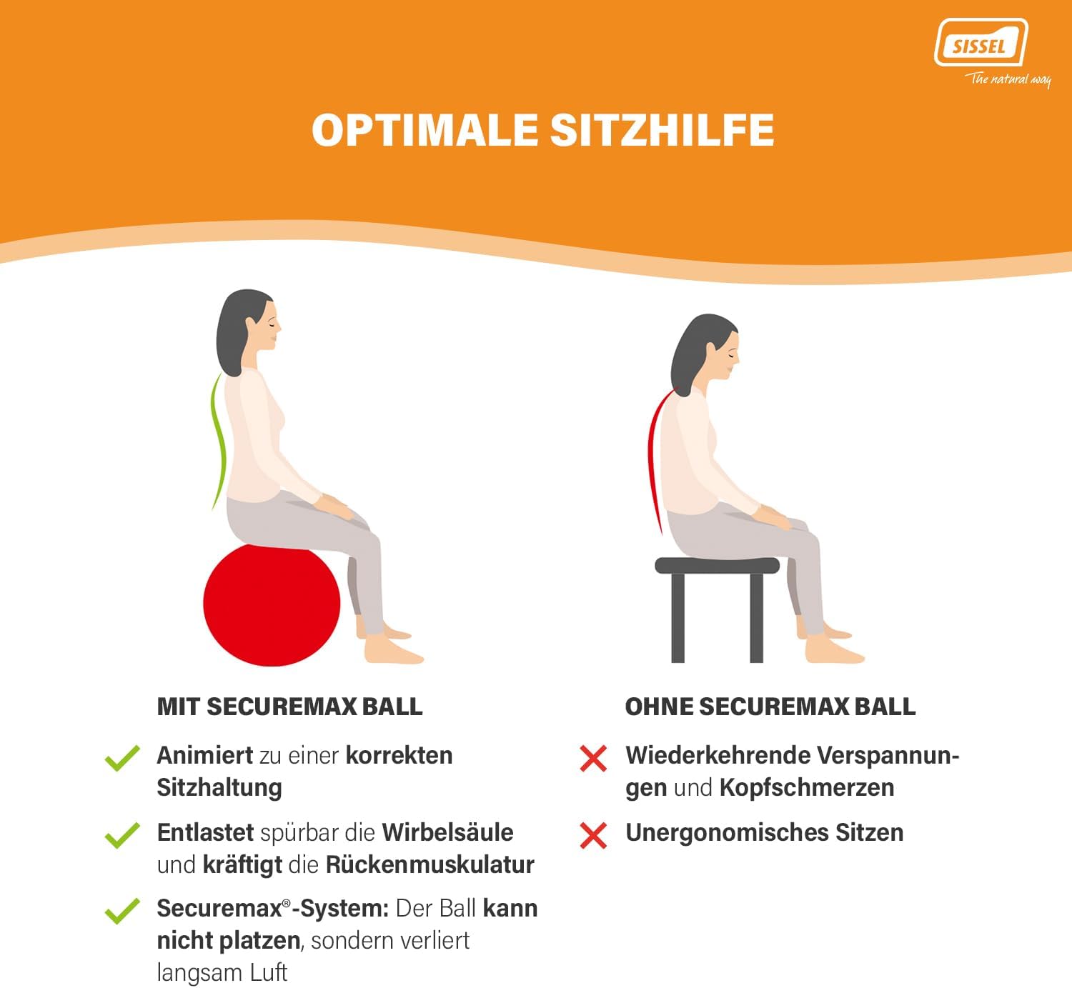 - OPTIMALE SITZHILFE: SISSEL SECUREMAX Gymnastikball fördert eine korrekte Sitzhaltung, entlastet die Wirbelsäule und stärkt die Rückenmuskulatur. Perfekt als dein Sitzmöbel für zuhause.