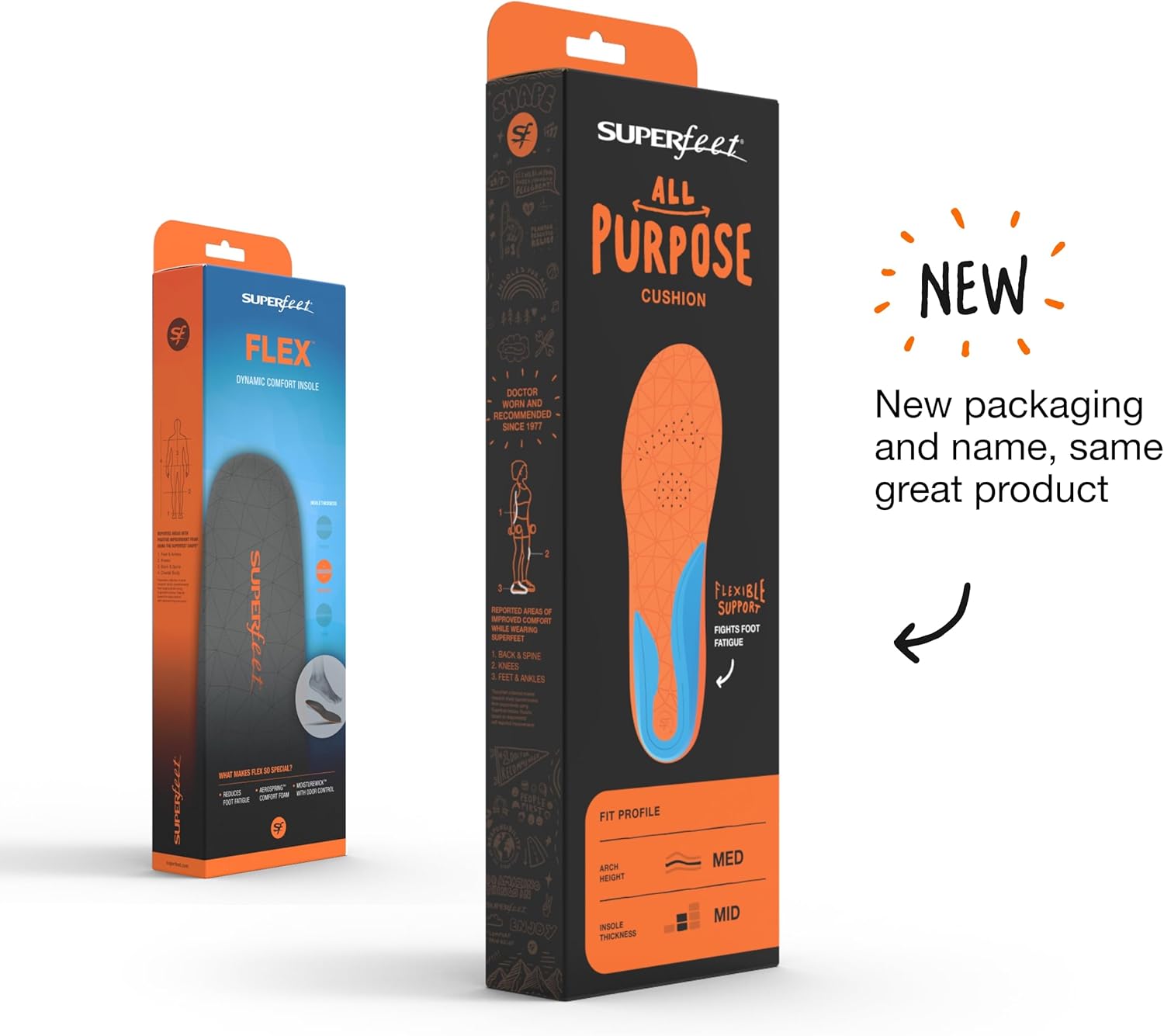 PRODUKTBESCHREIBUNGEN Gönnen Sie Ihren Schuhen ein Upgrade mit SUPERFEET FLEX Schuh Einlegesohlen. Die von Ärzten empfohlene Superfeet-Einlagenform ist eine ausgezeichnete Wahl. Ihr besonderes Flex-Design schmiegt sich an Ihre Füsse an und stützt Ihre Fersen, damit sich in Ihren Schuhe rundherum wohlfühlen. Die strapazierfähigen AEROSPRING-Komfortschaumsohlen bieten von der Ferse bis zu den Zehen herrlichen Komfort für beste Fusspflege. Ihr flexibles Fersenkissen Bett sorgt für Struktur und Stabilität, um die Belastung für Füsse, Knöchel und Knie verringern. FLEX-Einlagen passen am besten in Sportschuhe.