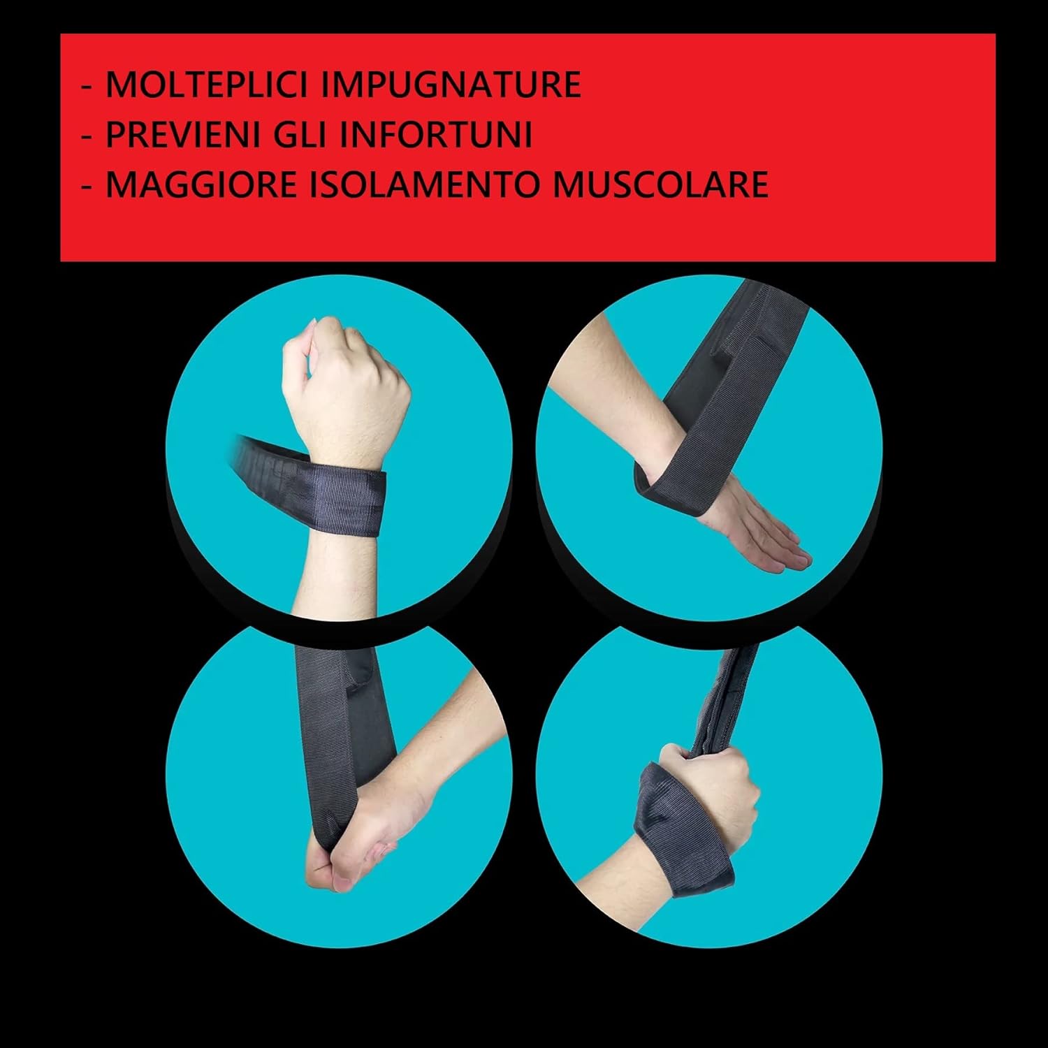 - · Ideale Ergonomie verhindert Verletzungen an Gelenken: Die Trizepsriemen bieten 4 Griff-Optionen, die es Ihnen ermöglichen, Ihre Hände in die bequemste Position zu positionieren, indem Sie übermässige Belastung von Handgelenken, Fingern und