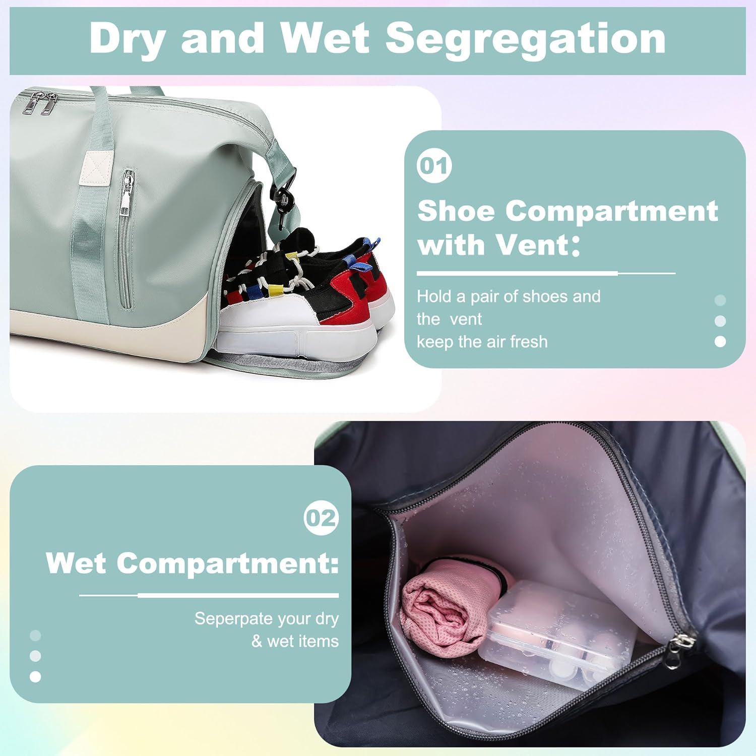 - 【Nass und Trockentrennung】 Die sporttasche mit schuhfach und nassfach verwendet wasserdichte materialien mit hoher dichte, um Ihnen zu helfen, schweissfeste kleidung, handtücher oder toilettenartikel zu klassifizieren. Können sie die nasse kleidung