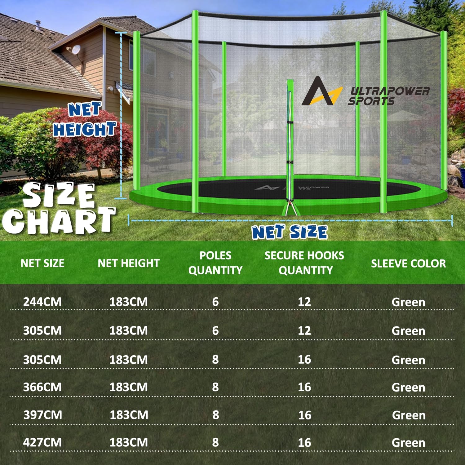 - Grösse: Sicherheitsnetz 305cm 6-stangen, passend für 305cm Trampoline mit 6 stangen, die drei "U" geformten Beine hat.(passend für 300 - 305cm Trampolin)