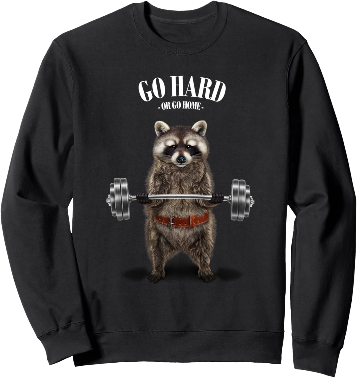Waschbär, der Gewichte im Fitnessstudio hebt Sweatshirt