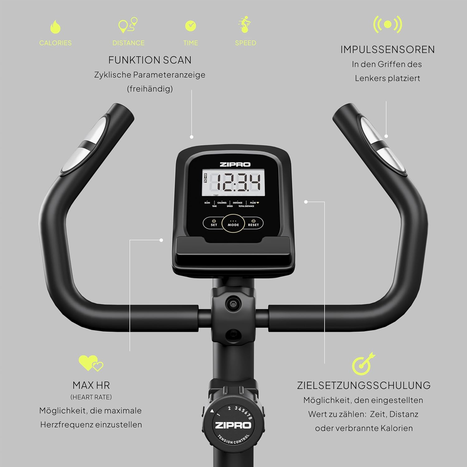 - Der Computer verfügt über vorinstallierte Trainingsprogramme, die Ihnen helfen, eine grossartige Form aufzubauen. Ergebnisse und Fortschritte können Sie auf dem gut lesbaren Display überwachen.