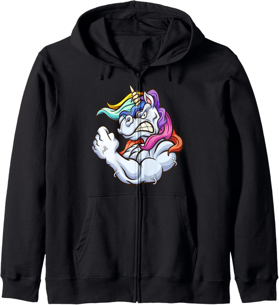 T-Shirt mit Einhorn und Muskeln, Geburtstag, Vatertag, Fitnessstudio, T-Shirt Kapuzenjacke