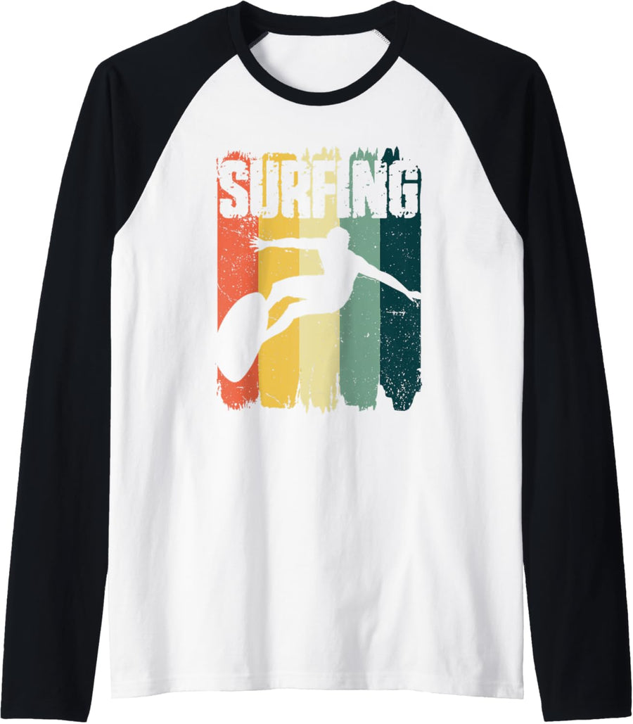 Surfing Sports Retro Vintage Beach Vibe Surfers Raglan