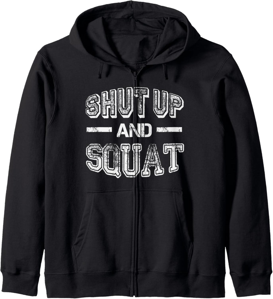 Shut Up and Squat Fitness Sprüche Gym Motivation Training Kapuzenjacke