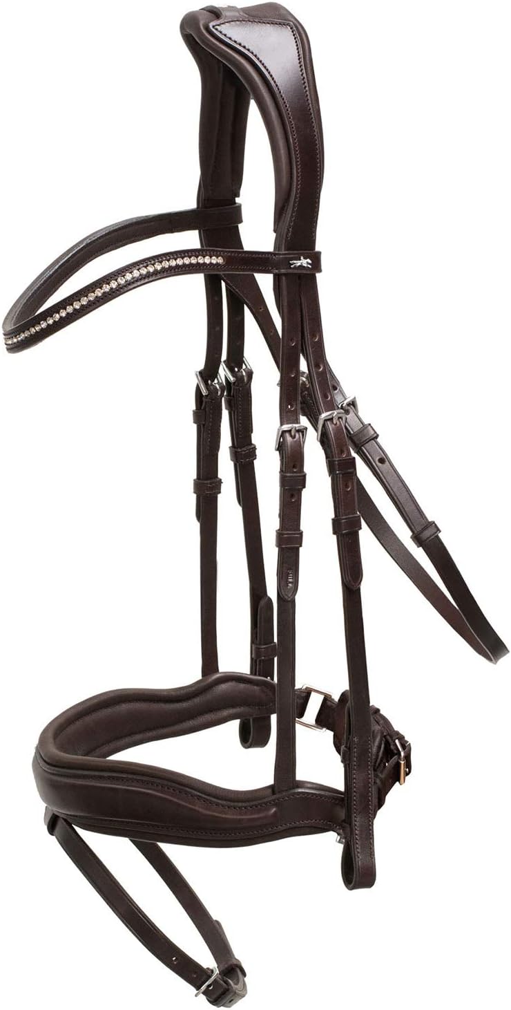 Schockemoehle Sports Anatomische Dressurhalfter Doppeltrense mit Flachleder Milan schwarz WB espress