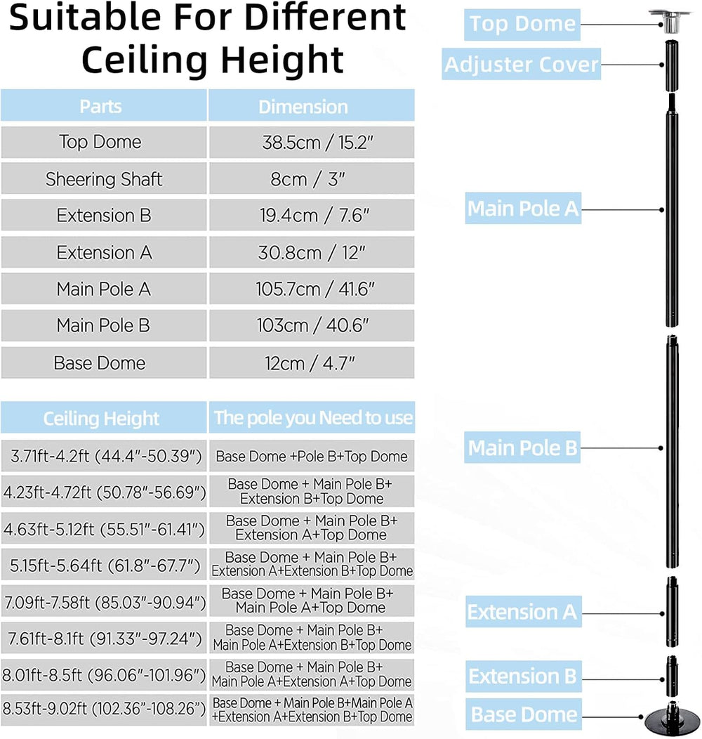 PRIOR FITNESS Kit Pole Dance Tanzstange 45 mm von 2,35 bis 2,74 m, höhenverstellbar, 2 Modi: drehbar