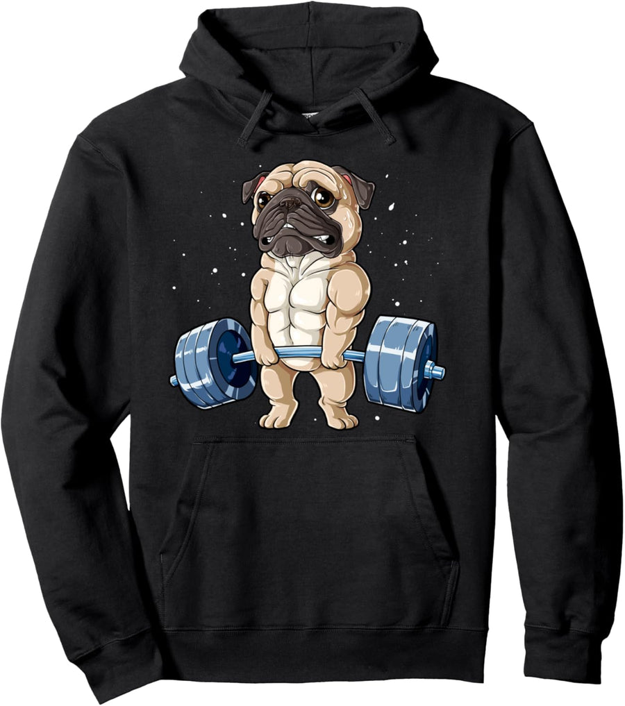 Pug Weightlifting Funny Deadlift Men Fitness Gym Workout Pullover Hoodie