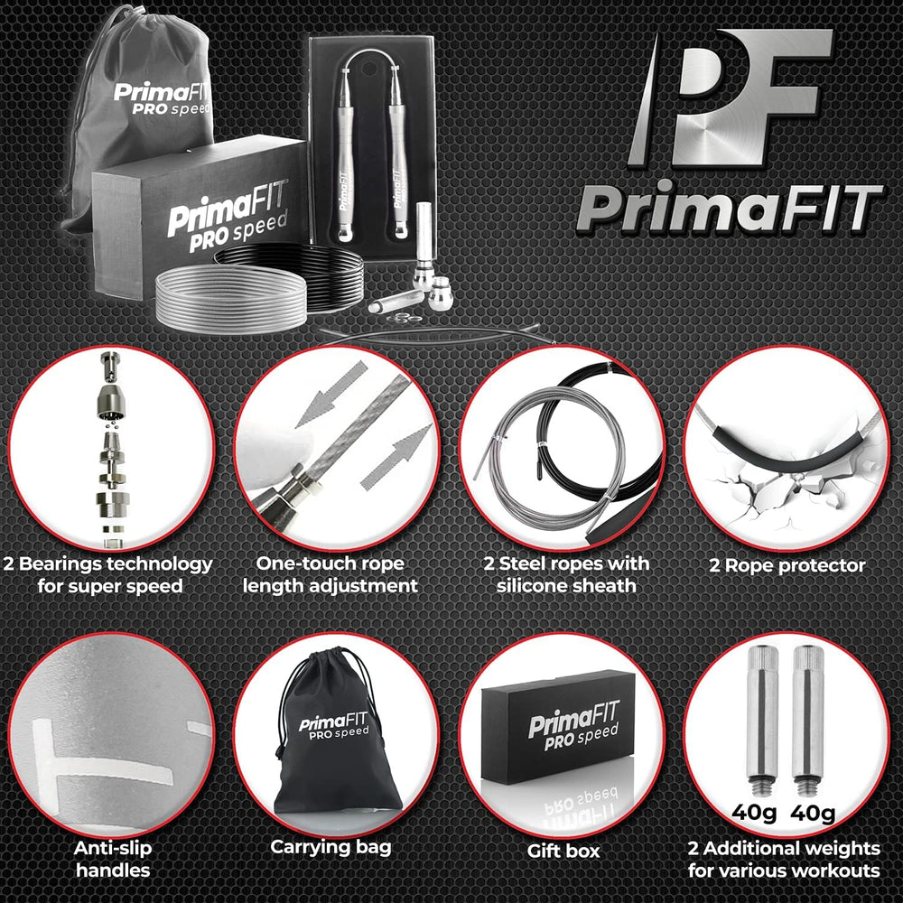 PrimaFIT Springseil Erwachsene Fitness Pro Speed Jump Rope 3m Seilspringen Verstellbar Mit Gewichten