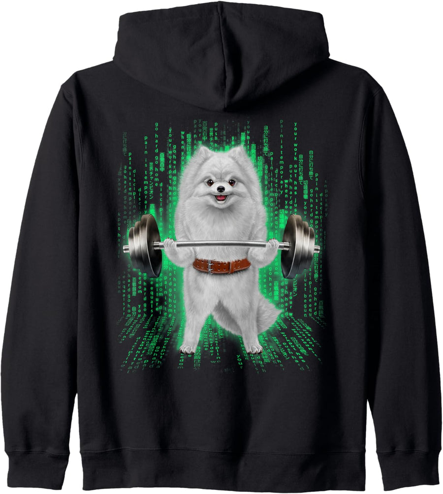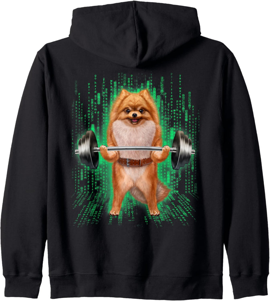 Pommerscher Hund, der Gewichte im Cyber-Fitnessstudio hebt Pullover Hoodie