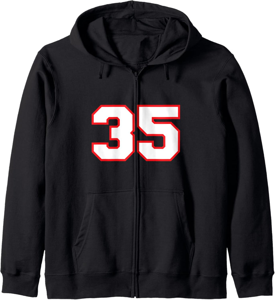 Nummer #35 Sportspieler Fan Trikot rot weiss Glückszahl Kapuzenjacke