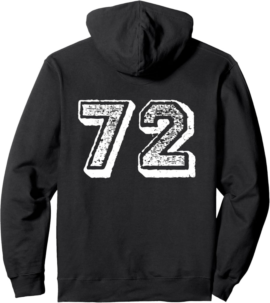 Number 72 Sports Jersey Player #72 Fan BACK PRINT Vintage Pullover Hoodie