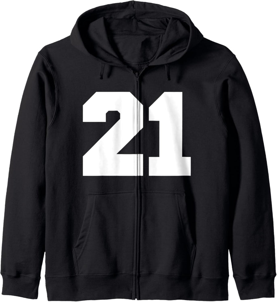 Number 21 Sports Jersey Player #21 Fan FRONT Print Varsity Kapuzenjacke