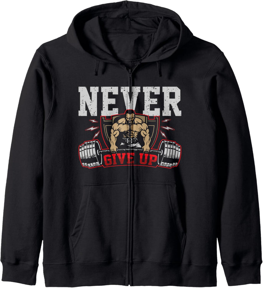 NEVER GIVE UP Kraftdreikampf Bodybuilding Fitnessstudio Musk Kapuzenjacke