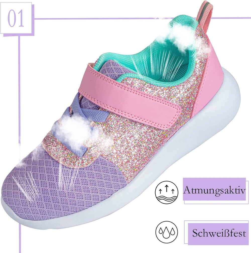 Mädchen Schuhe Kinder Turnschuhe Glitzer Sportschuhe Laufschuhe Hallenschuhe Sneakers Klettverschlus