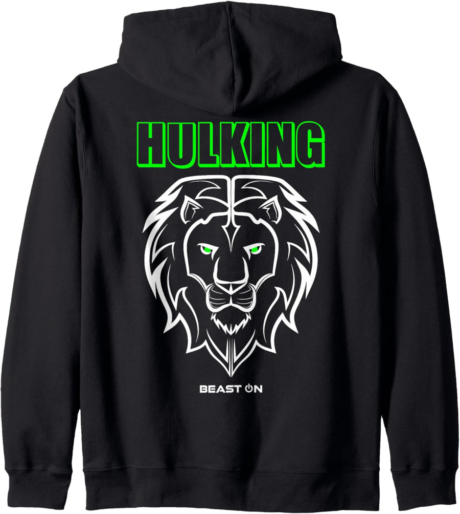 Löwe Kopf Rücken Motiv Hulking Grün Gym Fitness Bodybuilder Kapuzenjacke