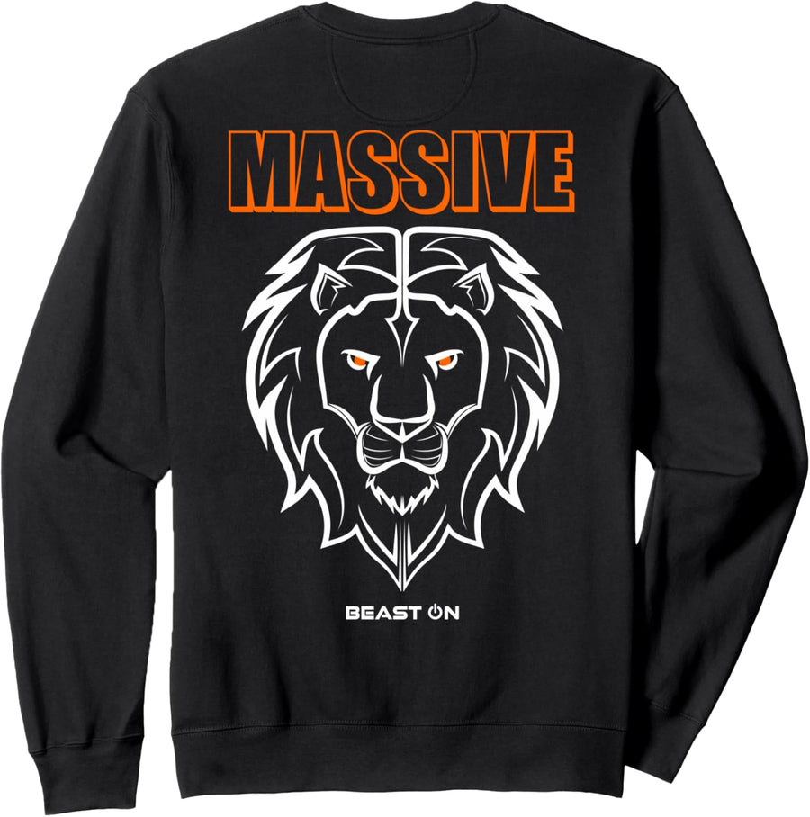 Löwe Kopf Rücken Motiv Massive Orange Gym Fitness Training Sweatshirt