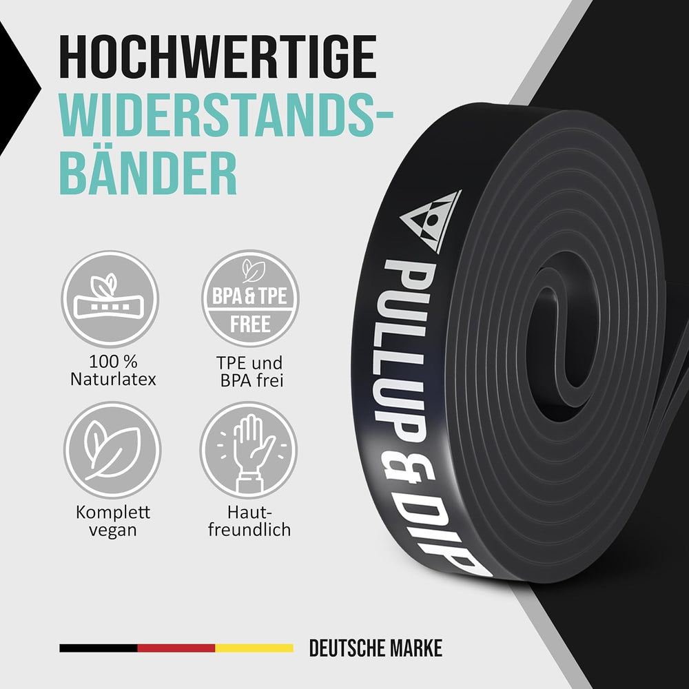 PULLUP & DIP Fitnessbänder Widerstandsbänder mit Tasche, Türanker (bei Sets) und Übungsguide - einze