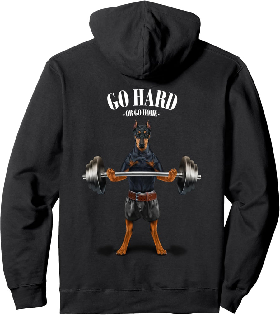 Dobermann Pinscher Hund Gewichtheben im Fitnessstudio Pullover Hoodie