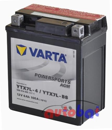 58009 Varta 506014005A514 Powersports AGM Motorradbatterie, 12 V, 6Ah, YTX7L-BS